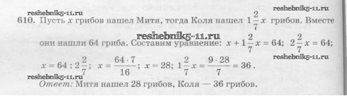 Готовая домашняя работа с ответами по Математике за 6 класс Виленкин, Жохов, Чесноков, Шварцбурд Учебник Мнемозина 2014 ФГОС - §3. Умножение и деление обыкновенных дробей 610
