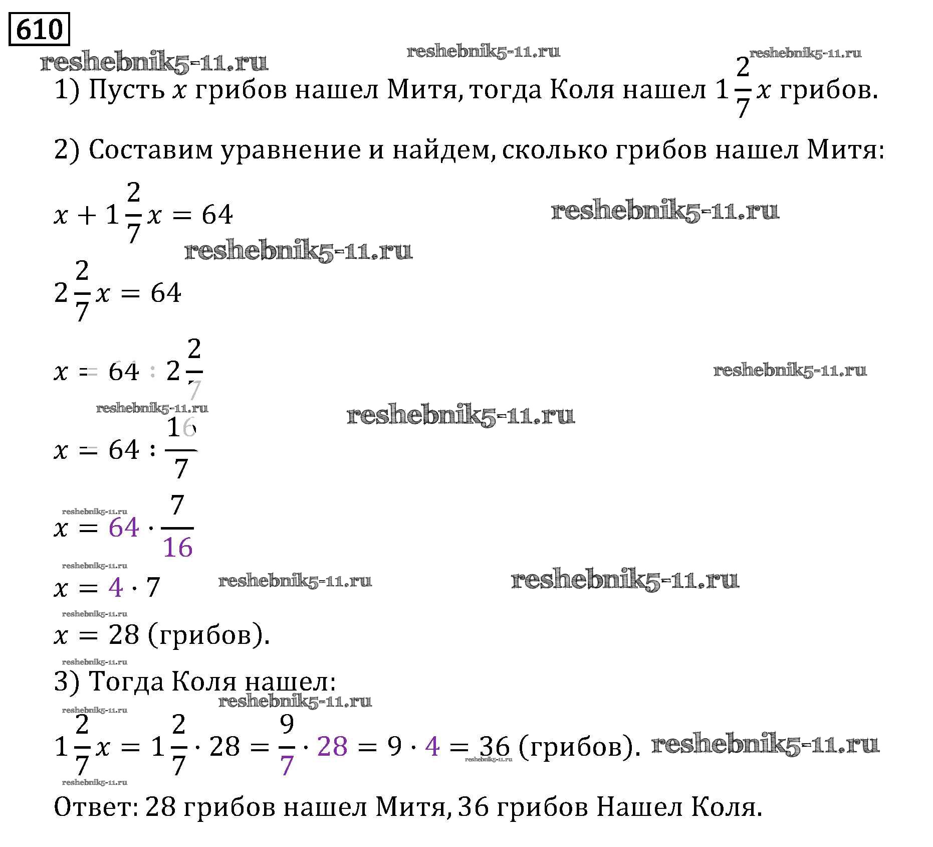Математика за 6 класс Виленкин Учебник Мнемозина §3 610