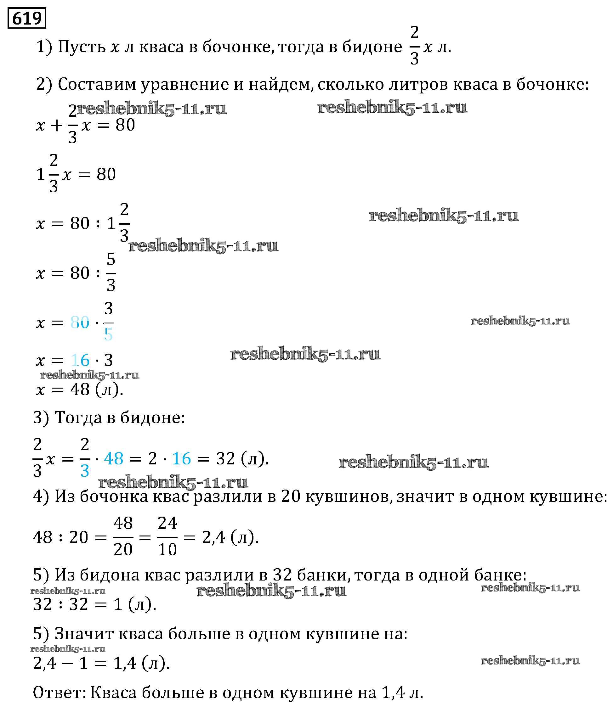 Готовая домашняя работа с ответами по Математике за 6 класс Виленкин, Жохов, Чесноков, Шварцбурд Учебник Мнемозина 2014 ФГОС - §3. Умножение и деление обыкновенных дробей 619
