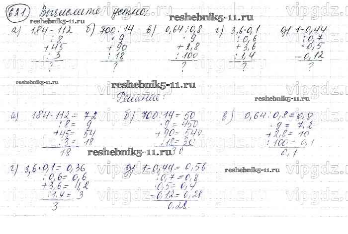 Готовая домашняя работа с ответами по Математике за 6 класс Виленкин, Жохов, Чесноков, Шварцбурд Учебник Мнемозина 2014 ФГОС - §3. Умножение и деление обыкновенных дробей 621