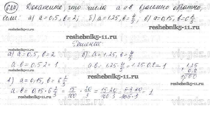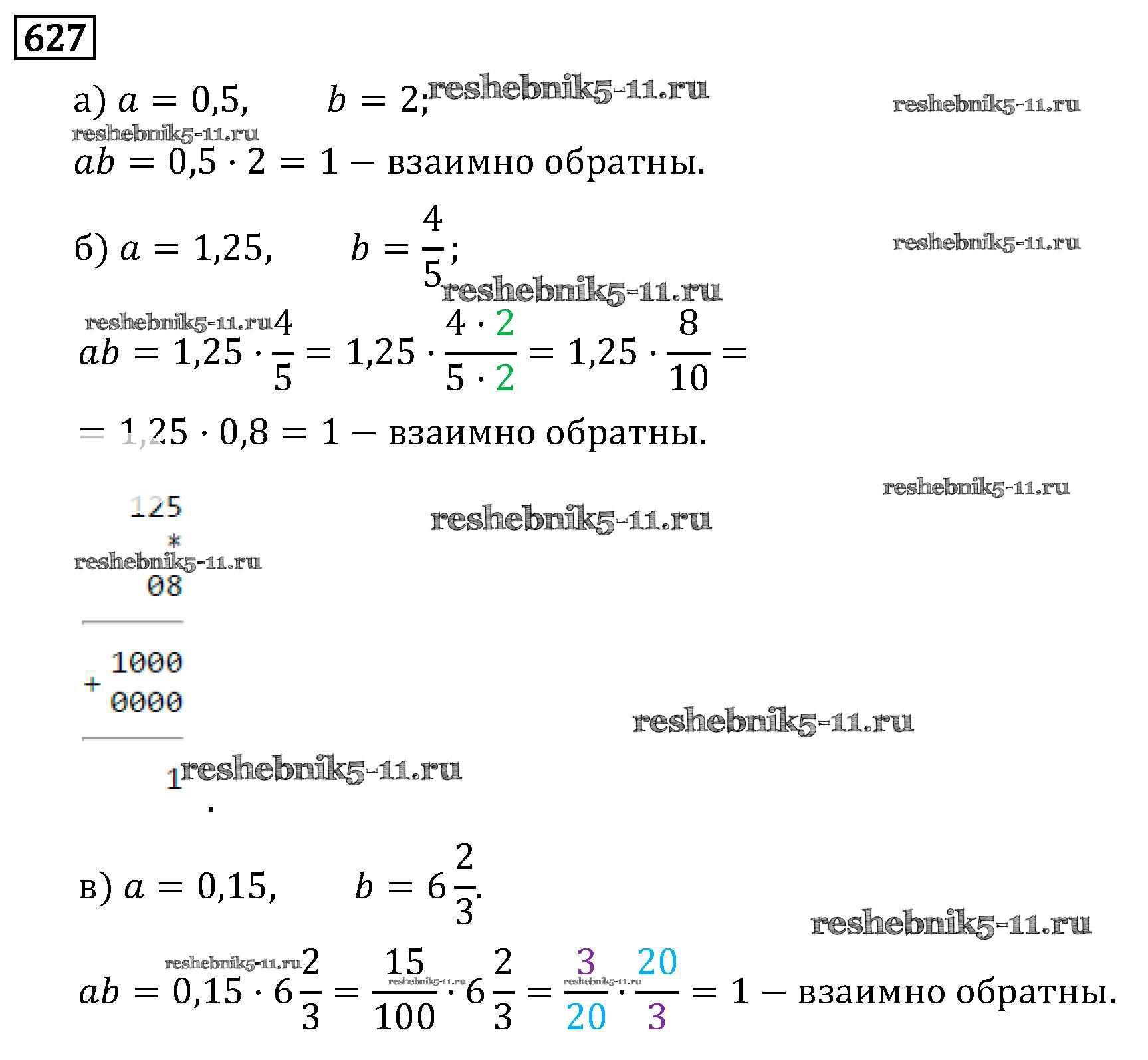 Готовая домашняя работа с ответами по Математике за 6 класс Виленкин, Жохов, Чесноков, Шварцбурд Учебник Мнемозина 2014 ФГОС - §3. Умножение и деление обыкновенных дробей 627