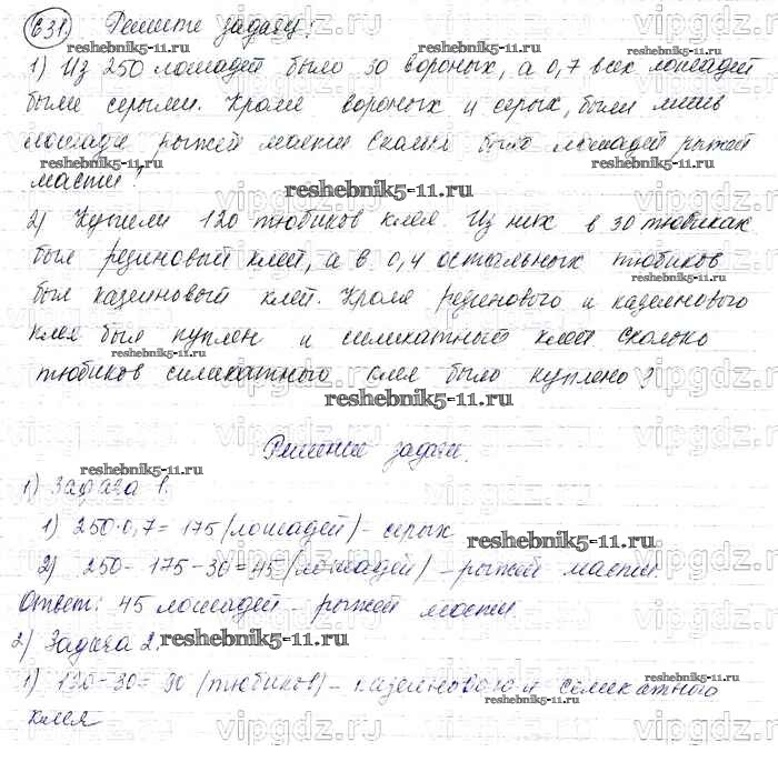 Готовая домашняя работа с ответами по Математике за 6 класс Виленкин, Жохов, Чесноков, Шварцбурд Учебник Мнемозина 2014 ФГОС - §3. Умножение и деление обыкновенных дробей 631