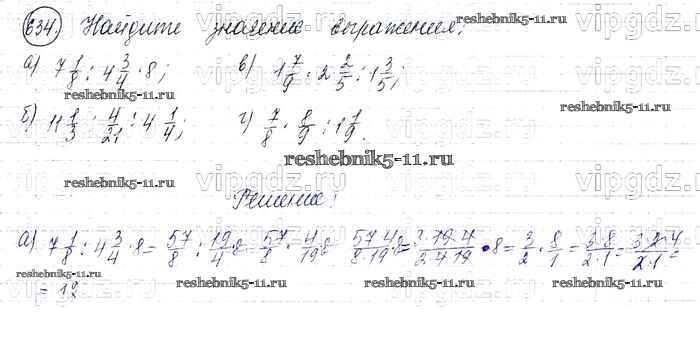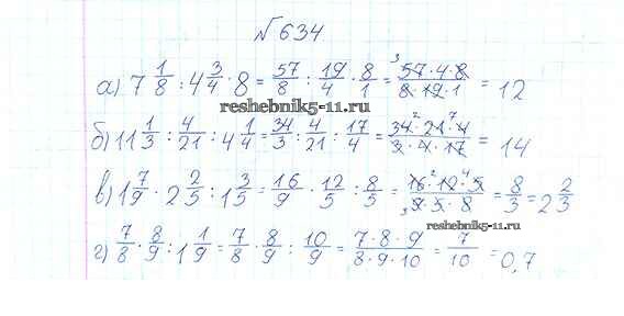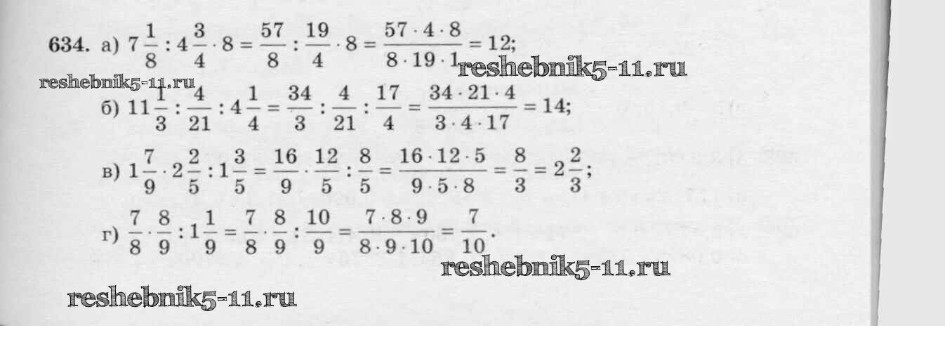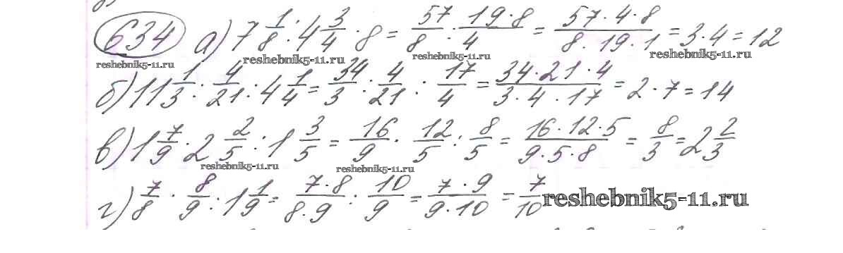 Готовая домашняя работа с ответами по Математике за 6 класс Виленкин, Жохов, Чесноков, Шварцбурд Учебник Мнемозина 2014 ФГОС - §3. Умножение и деление обыкновенных дробей 634