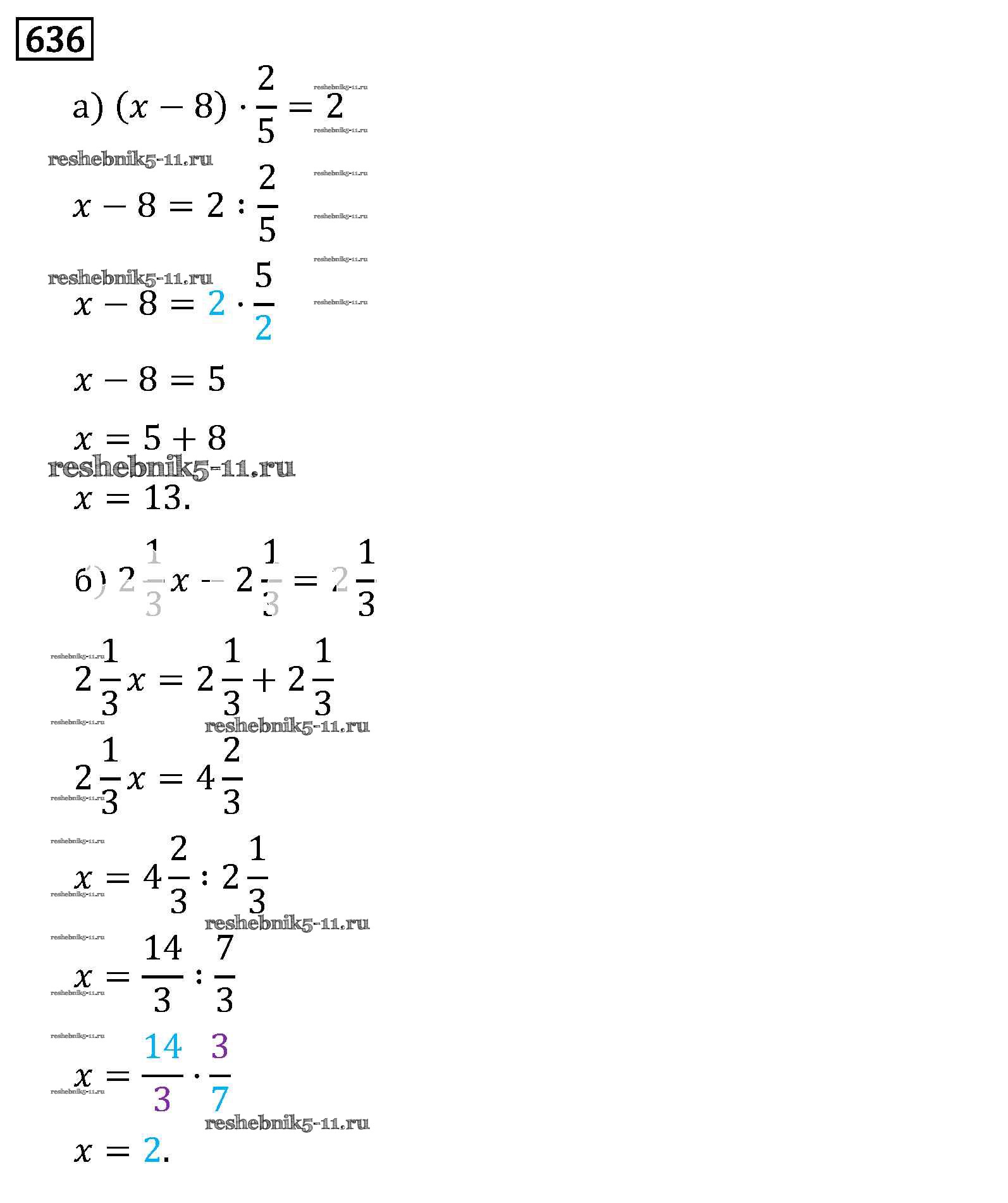 Готовая домашняя работа с ответами по Математике за 6 класс Виленкин, Жохов, Чесноков, Шварцбурд Учебник Мнемозина 2014 ФГОС - §3. Умножение и деление обыкновенных дробей 636
