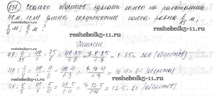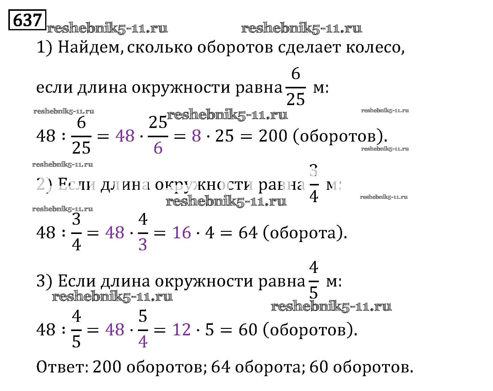 Готовая домашняя работа с ответами по Математике за 6 класс Виленкин, Жохов, Чесноков, Шварцбурд Учебник Мнемозина 2014 ФГОС - §3. Умножение и деление обыкновенных дробей 637