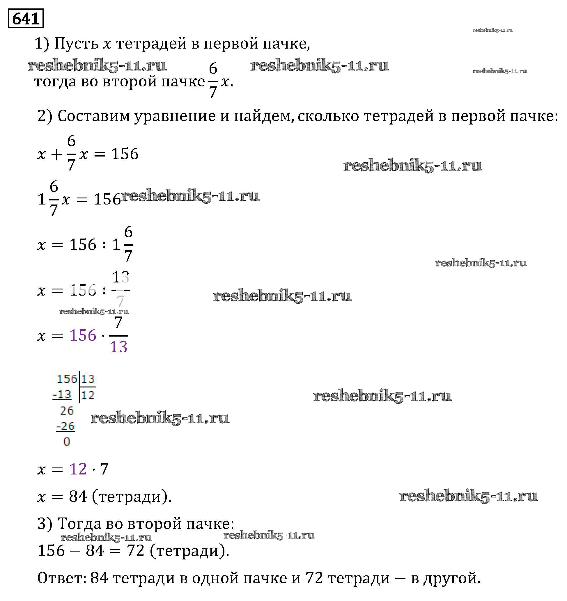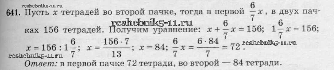 Готовая домашняя работа с ответами по Математике за 6 класс Виленкин, Жохов, Чесноков, Шварцбурд Учебник Мнемозина 2014 ФГОС - §3. Умножение и деление обыкновенных дробей 641