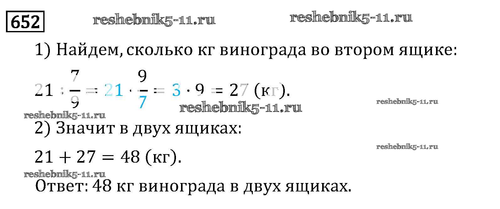 Готовая домашняя работа с ответами по Математике за 6 класс Виленкин, Жохов, Чесноков, Шварцбурд Учебник Мнемозина 2014 ФГОС - §3. Умножение и деление обыкновенных дробей 652