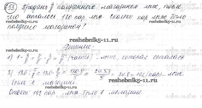 Готовая домашняя работа с ответами по Математике за 6 класс Виленкин, Жохов, Чесноков, Шварцбурд Учебник Мнемозина 2014 ФГОС - §3. Умножение и деление обыкновенных дробей 653