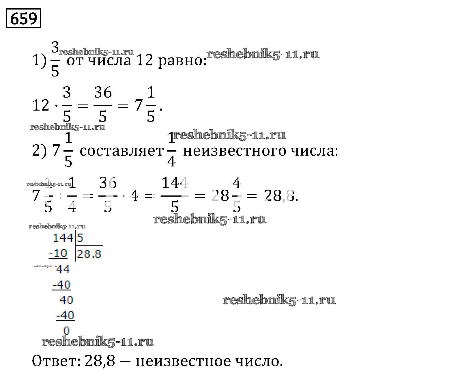 Готовая домашняя работа с ответами по Математике за 6 класс Виленкин, Жохов, Чесноков, Шварцбурд Учебник Мнемозина 2014 ФГОС - §3. Умножение и деление обыкновенных дробей 659