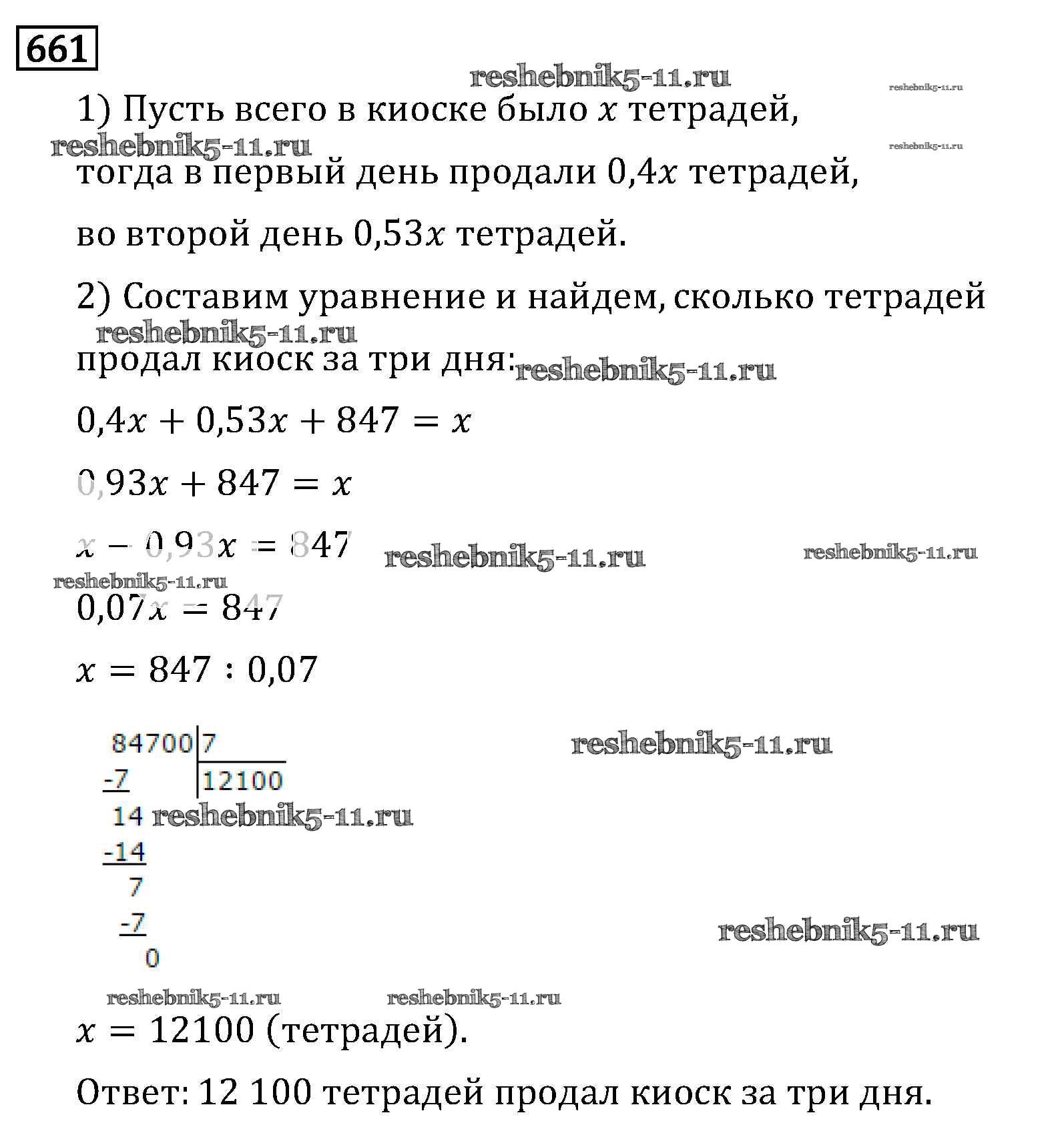 Готовая домашняя работа с ответами по Математике за 6 класс Виленкин, Жохов, Чесноков, Шварцбурд Учебник Мнемозина 2014 ФГОС - §3. Умножение и деление обыкновенных дробей 661