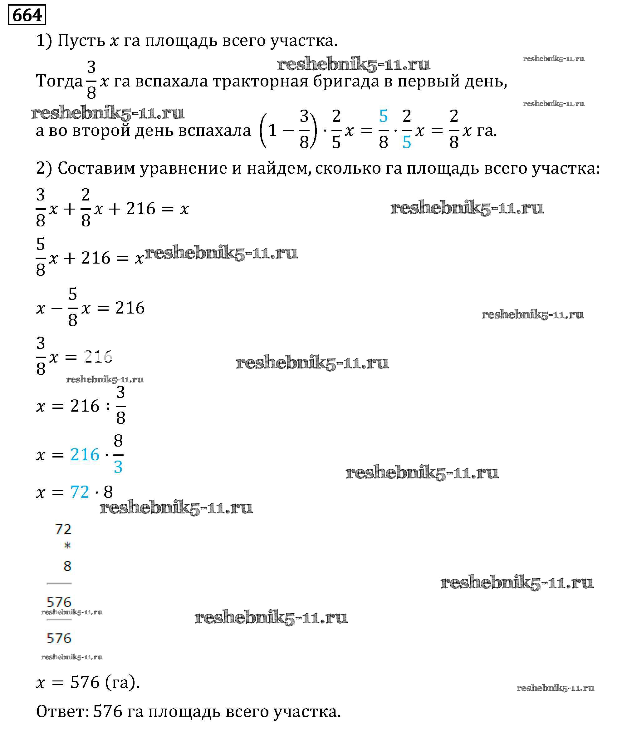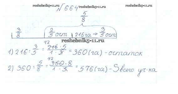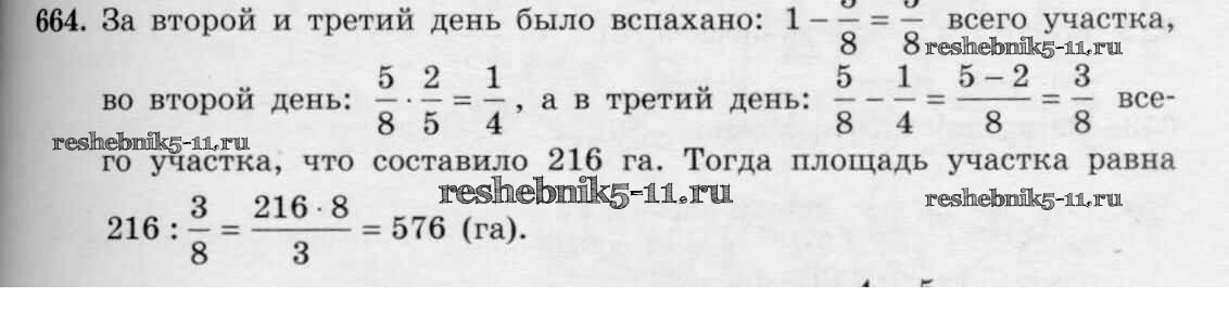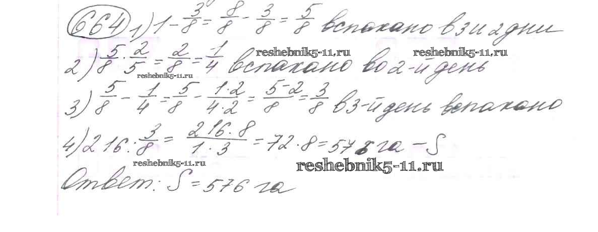 Готовая домашняя работа с ответами по Математике за 6 класс Виленкин, Жохов, Чесноков, Шварцбурд Учебник Мнемозина 2014 ФГОС - §3. Умножение и деление обыкновенных дробей 664