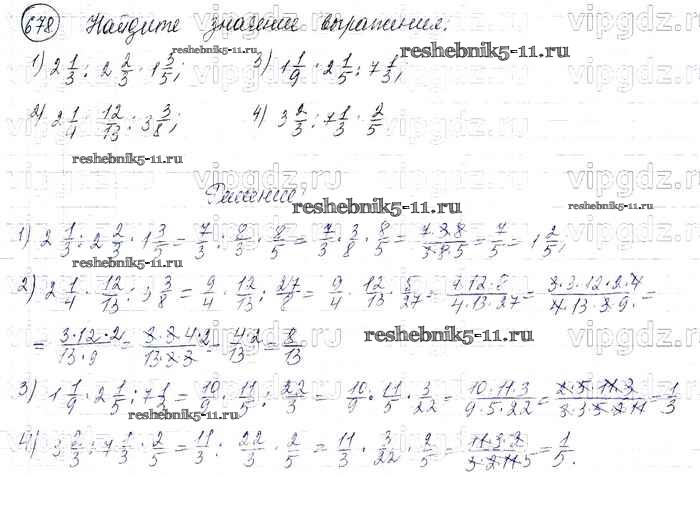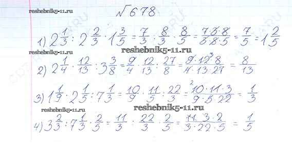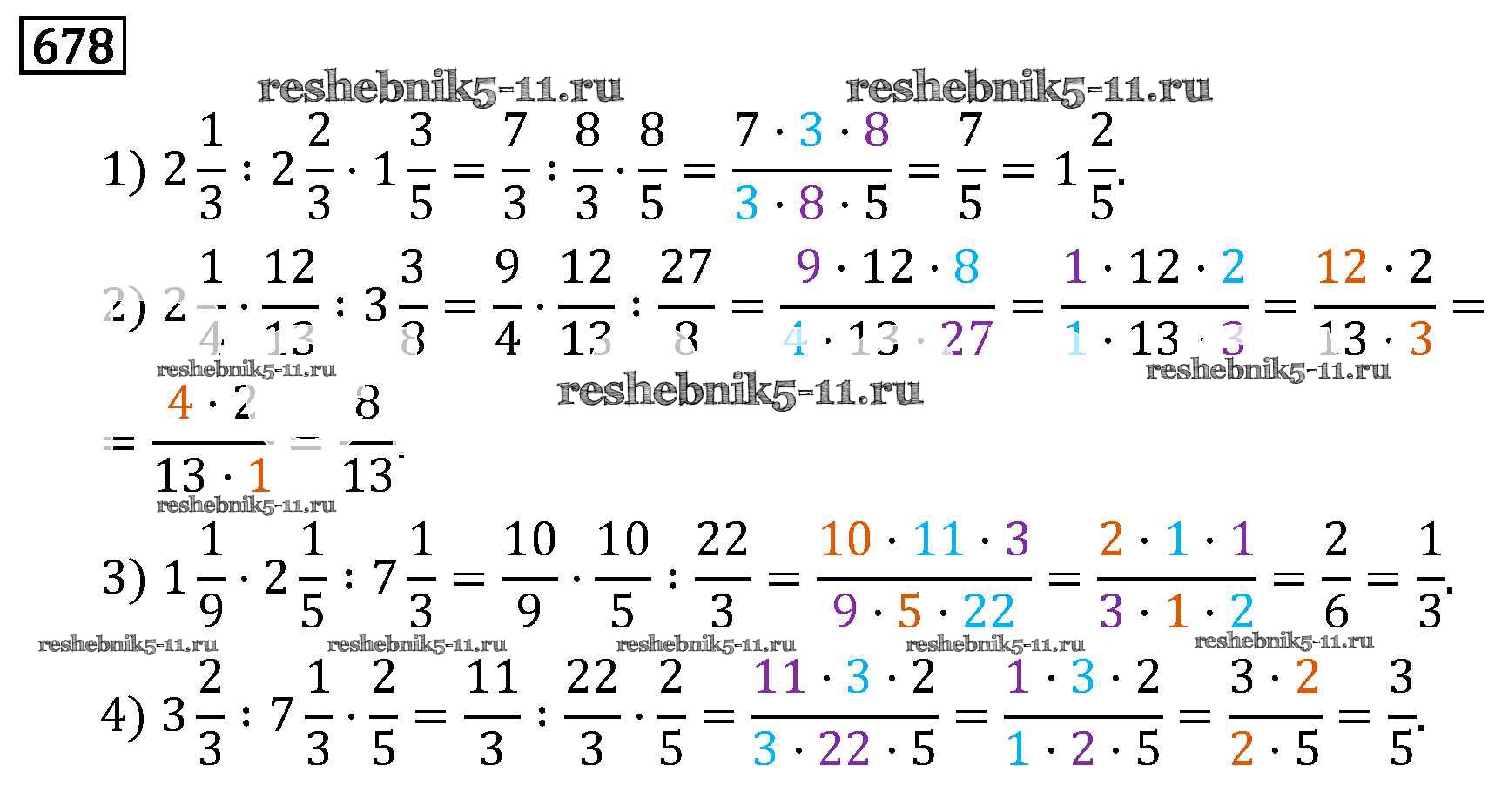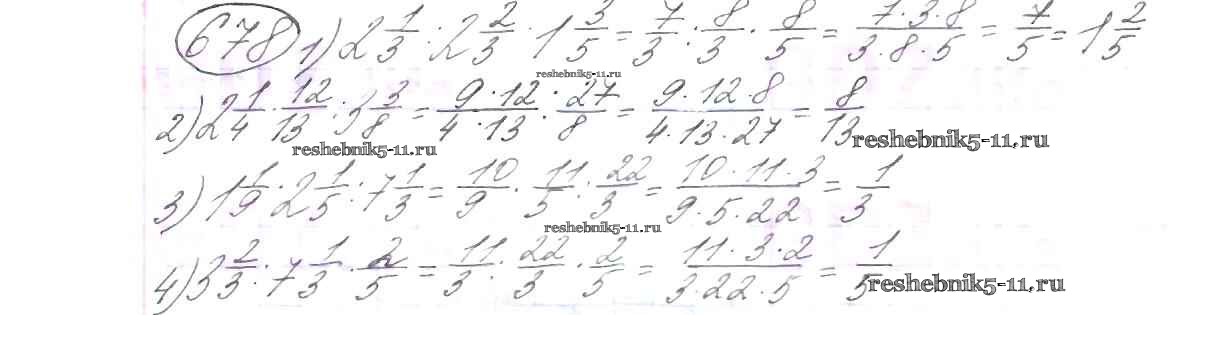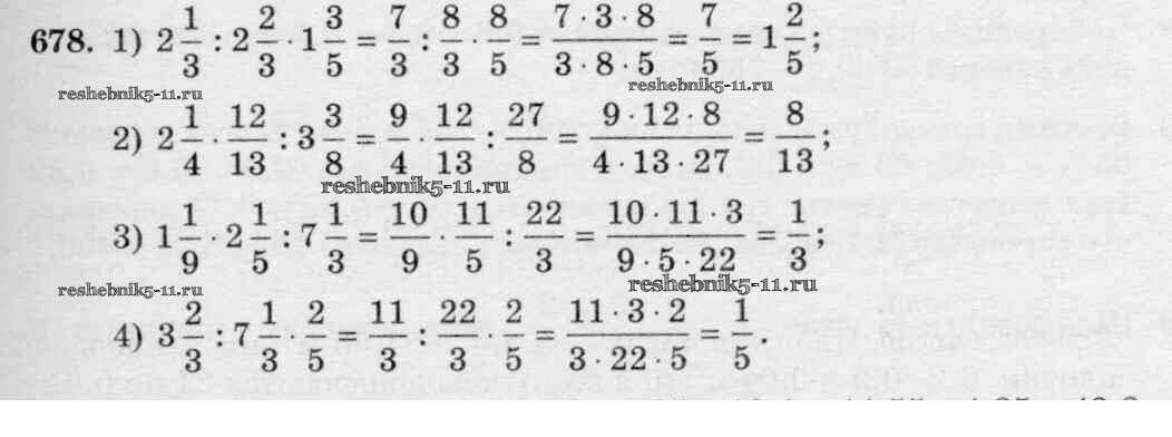 Готовая домашняя работа с ответами по Математике за 6 класс Виленкин, Жохов, Чесноков, Шварцбурд Учебник Мнемозина 2014 ФГОС - §3. Умножение и деление обыкновенных дробей 678