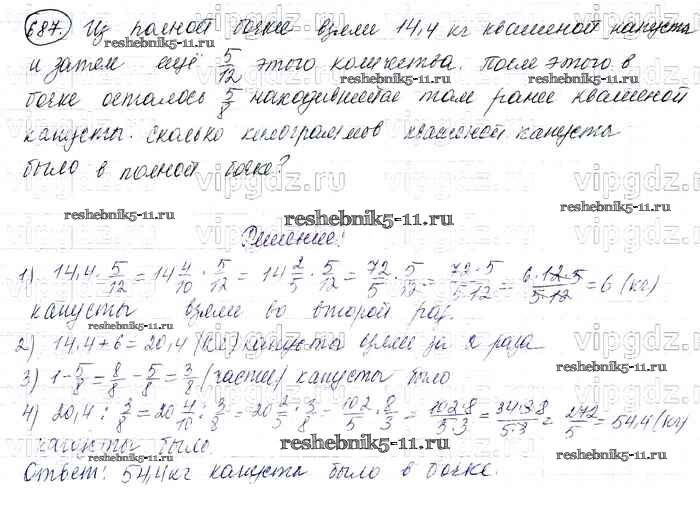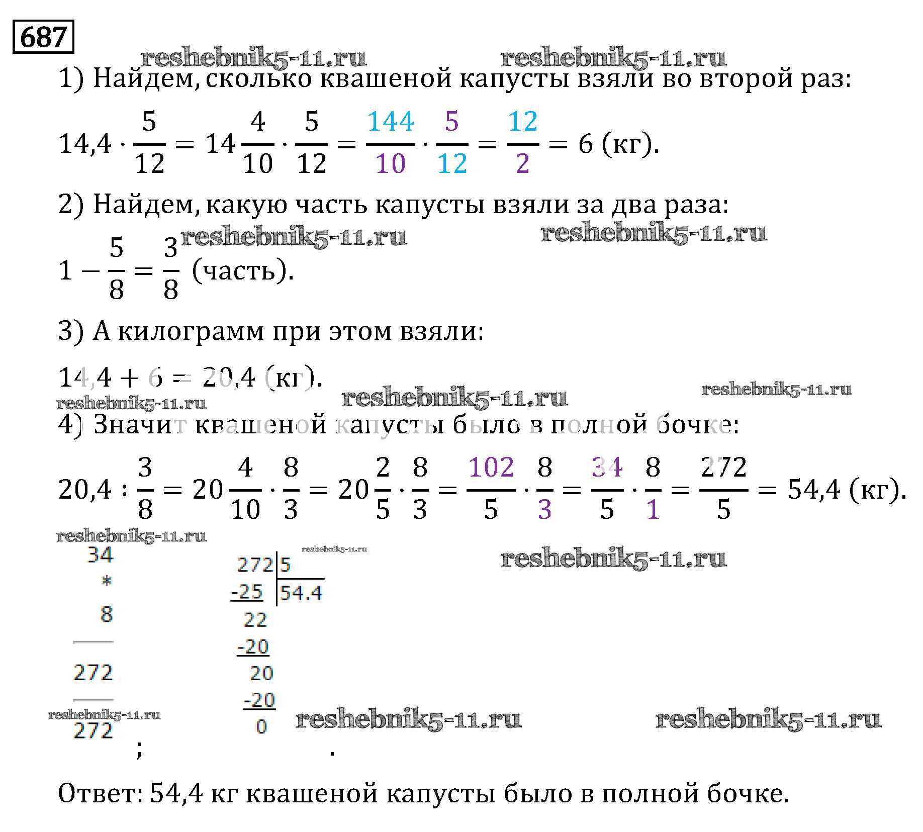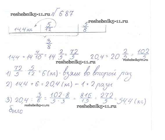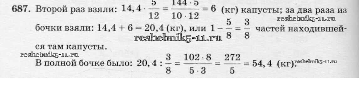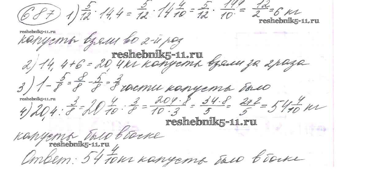 Готовая домашняя работа с ответами по Математике за 6 класс Виленкин, Жохов, Чесноков, Шварцбурд Учебник Мнемозина 2014 ФГОС - §3. Умножение и деление обыкновенных дробей 687