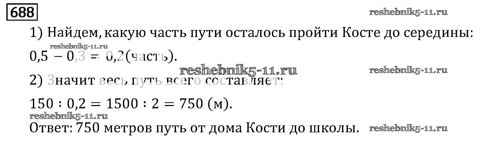 Готовая домашняя работа с ответами по Математике за 6 класс Виленкин, Жохов, Чесноков, Шварцбурд Учебник Мнемозина 2014 ФГОС - §3. Умножение и деление обыкновенных дробей 688