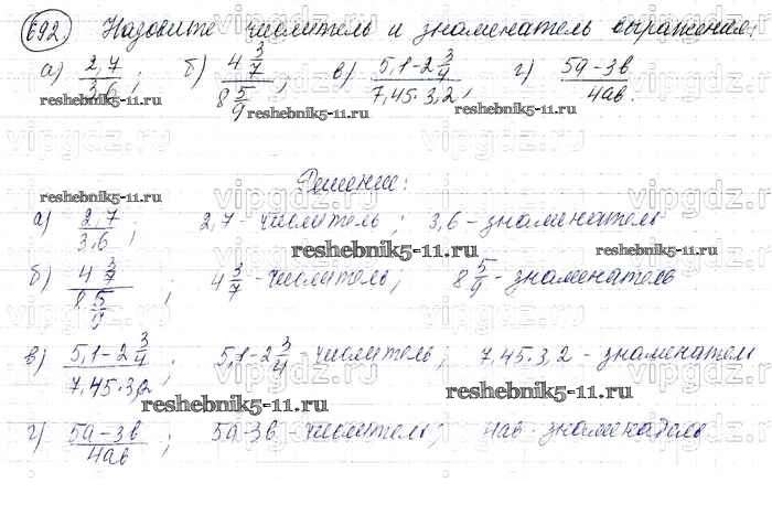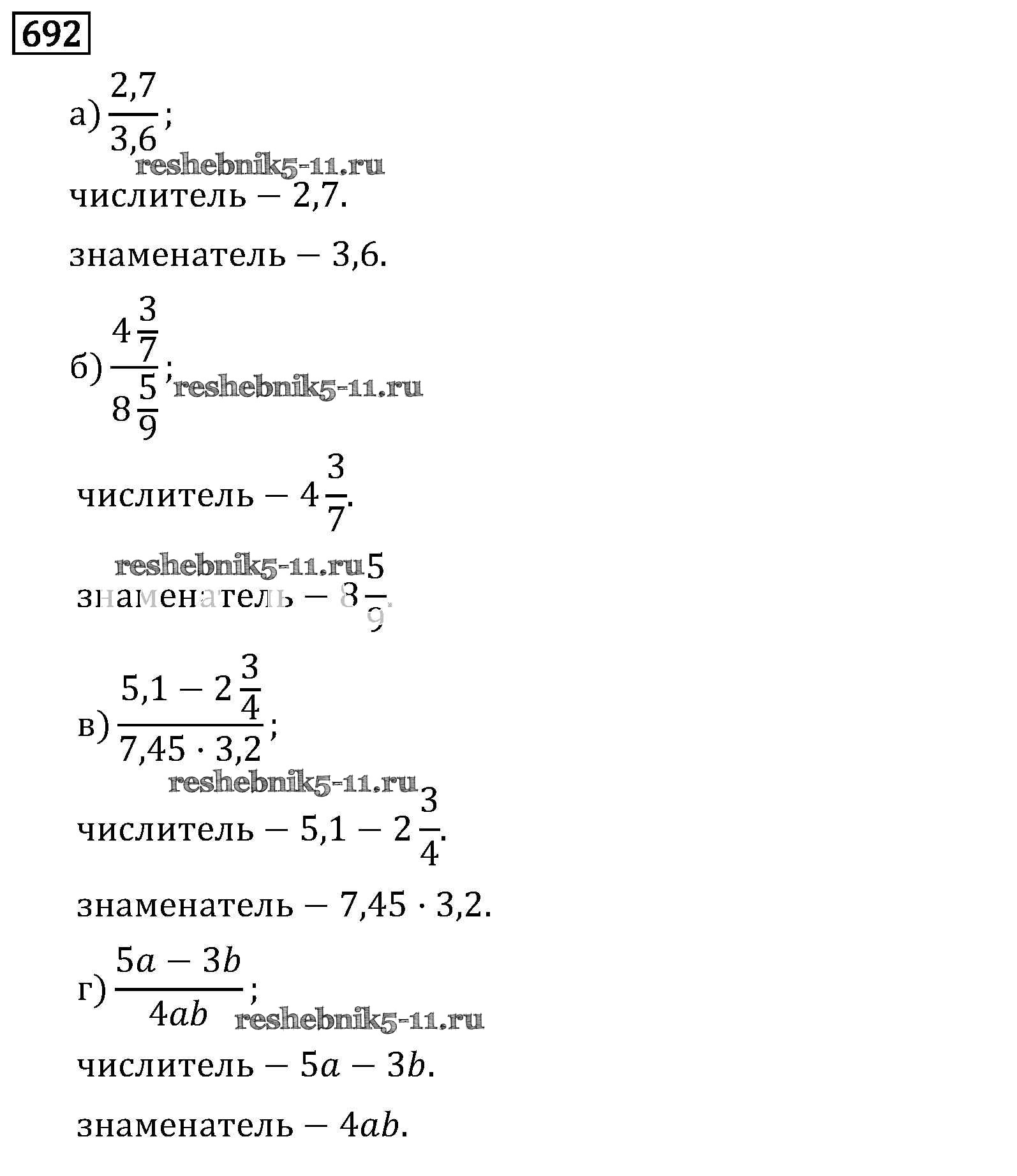 Готовая домашняя работа с ответами по Математике за 6 класс Виленкин, Жохов, Чесноков, Шварцбурд Учебник Мнемозина 2014 ФГОС - §3. Умножение и деление обыкновенных дробей 692