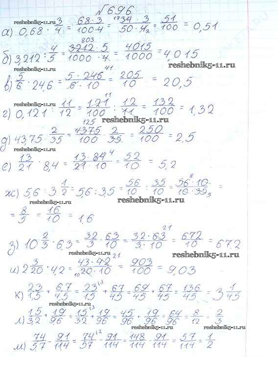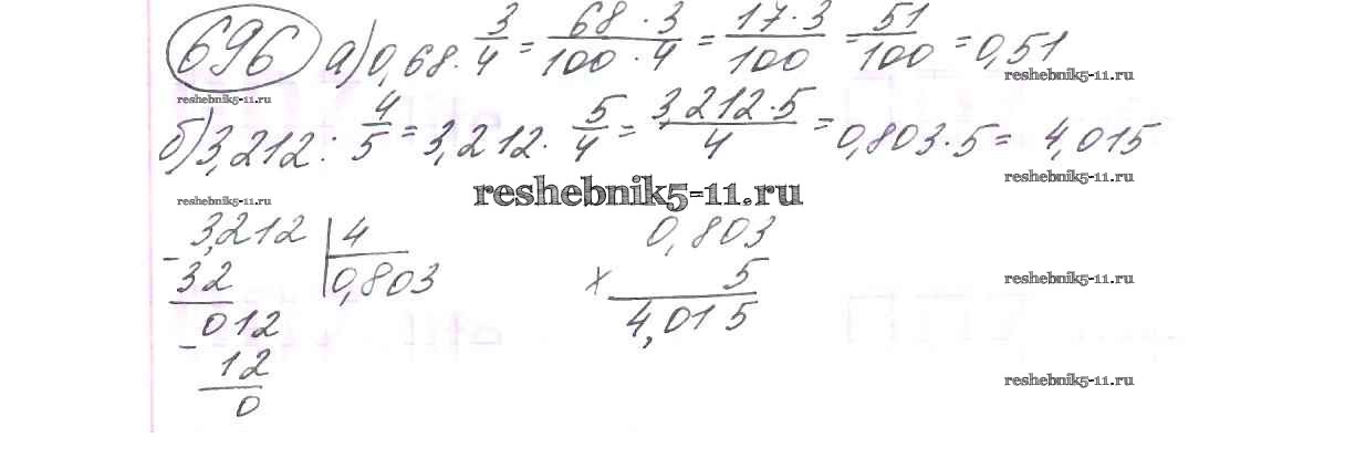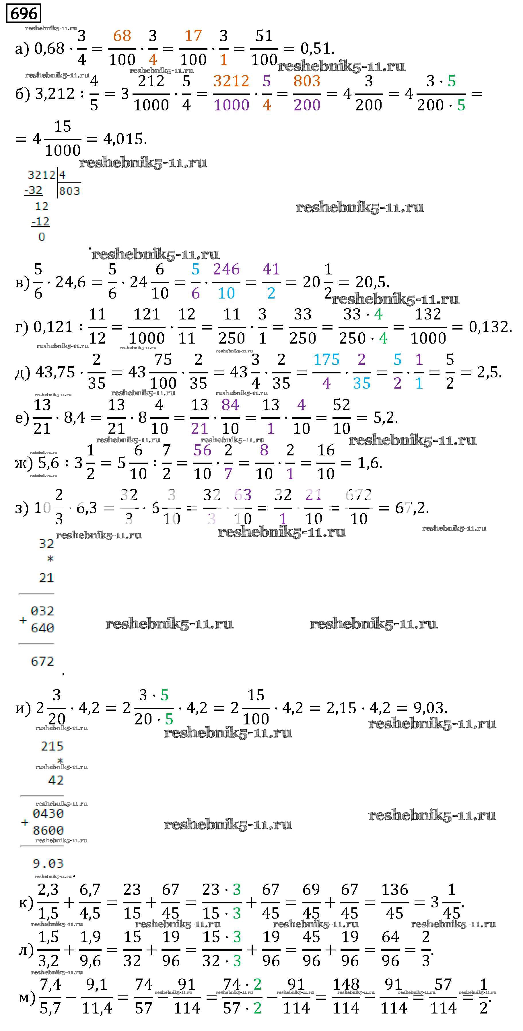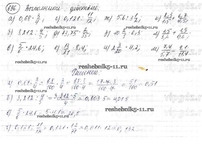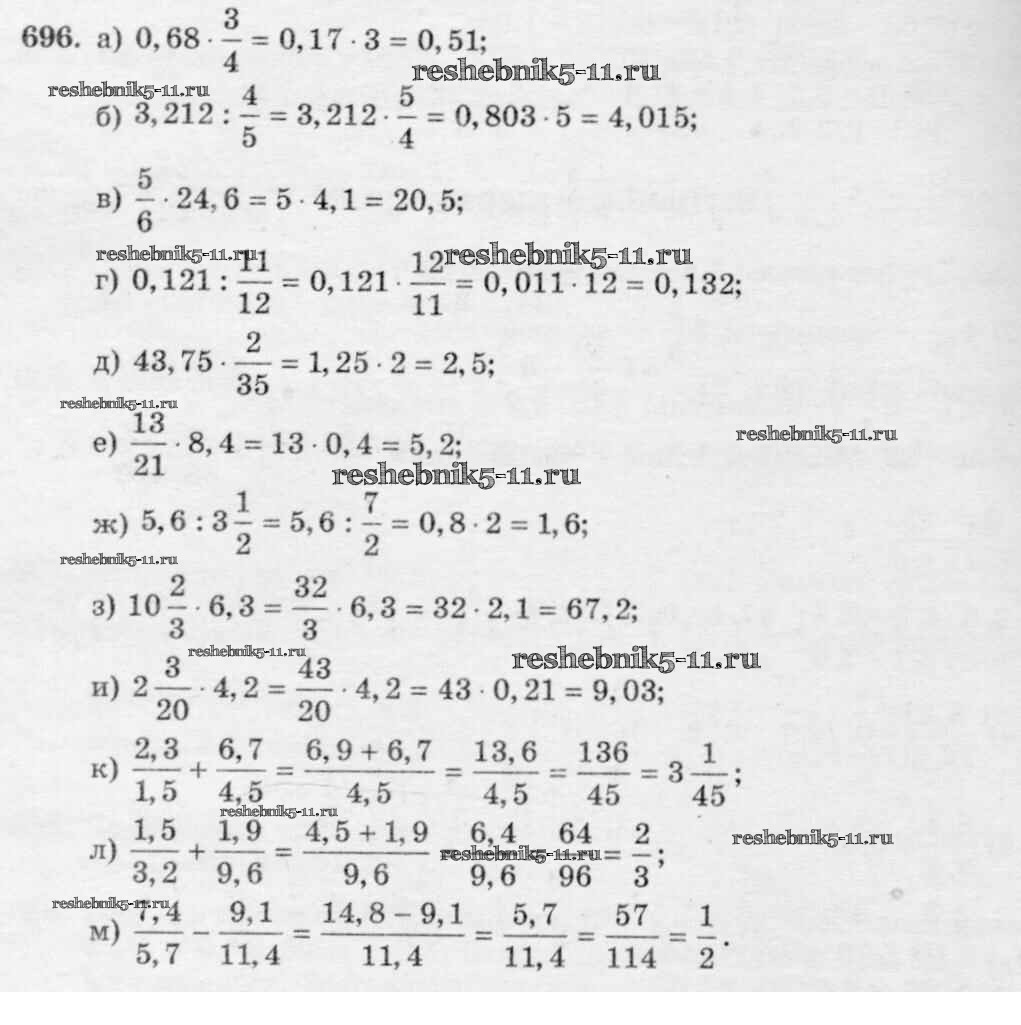 Готовая домашняя работа с ответами по Математике за 6 класс Виленкин, Жохов, Чесноков, Шварцбурд Учебник Мнемозина 2014 ФГОС - §3. Умножение и деление обыкновенных дробей 696