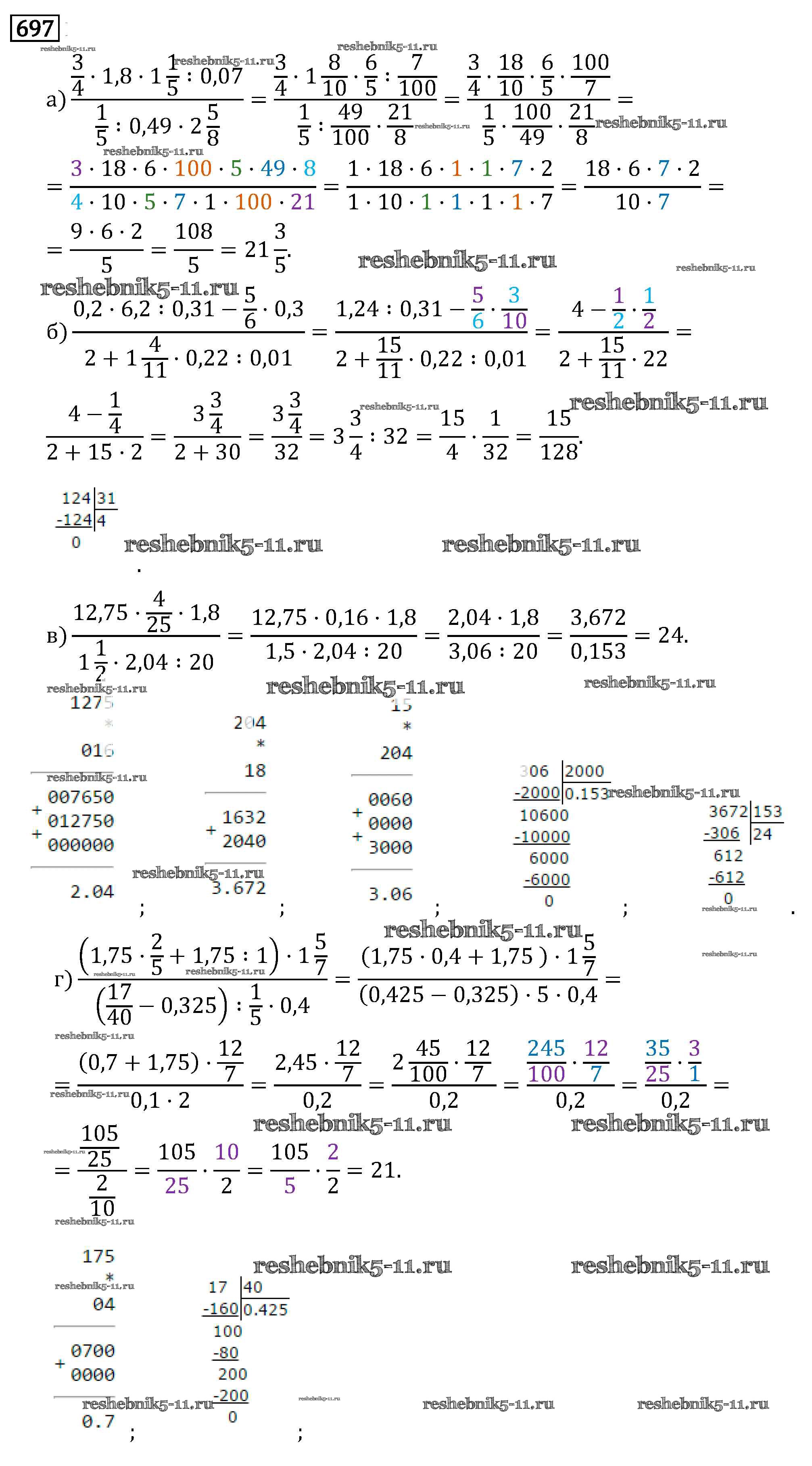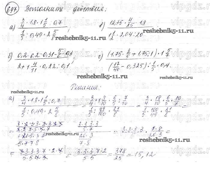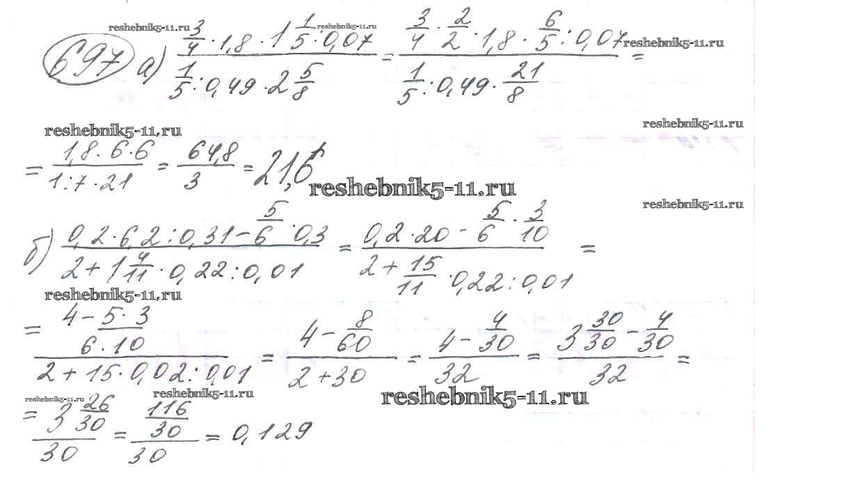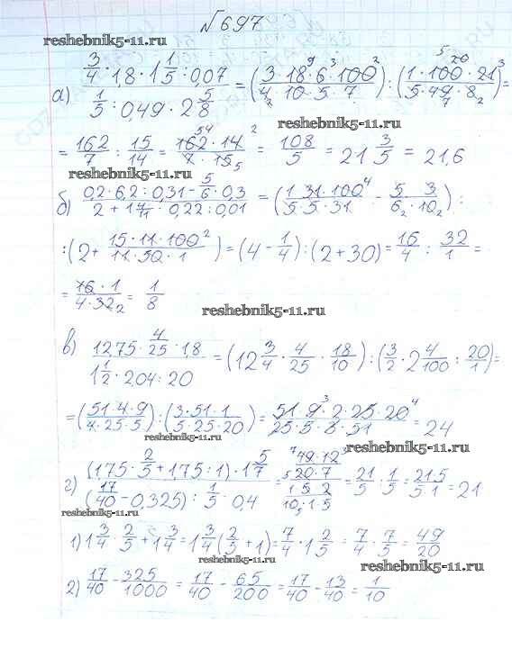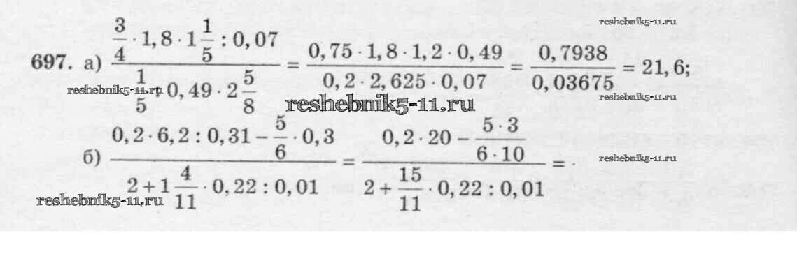 Готовая домашняя работа с ответами по Математике за 6 класс Виленкин, Жохов, Чесноков, Шварцбурд Учебник Мнемозина 2014 ФГОС - §3. Умножение и деление обыкновенных дробей 697