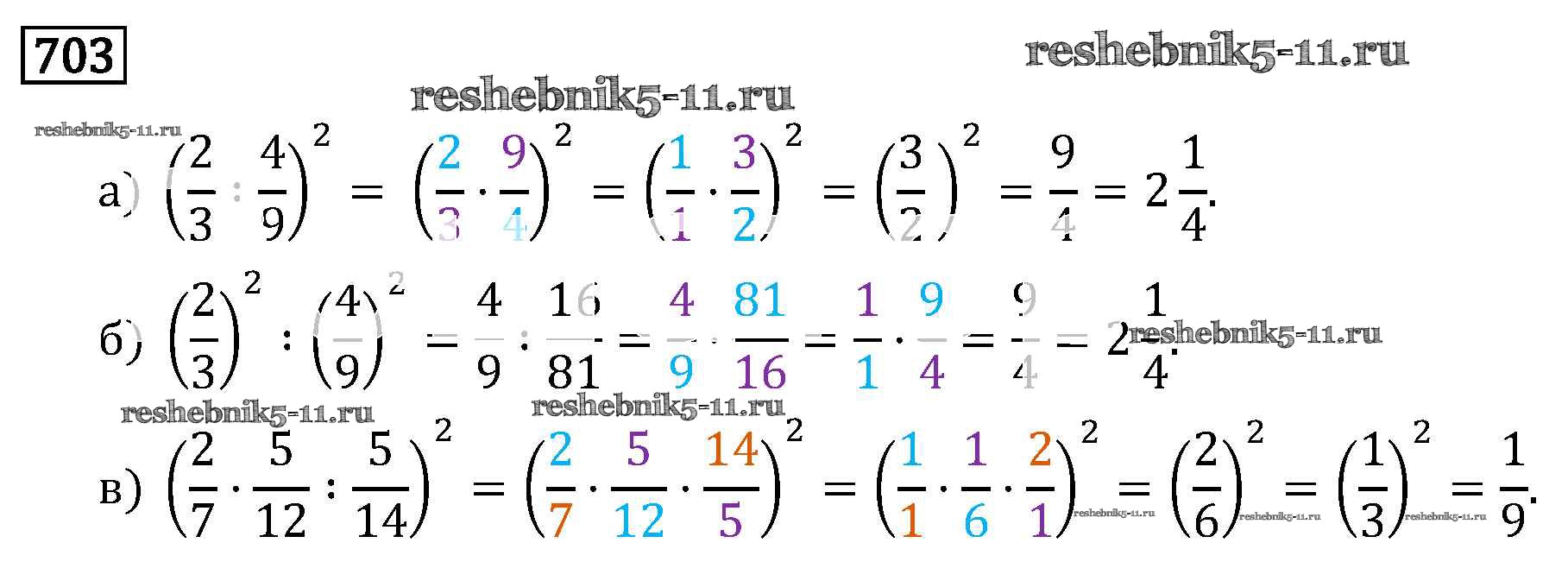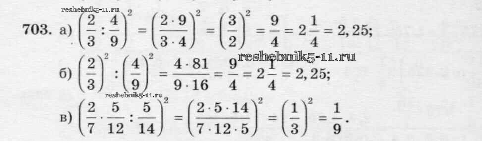 Готовая домашняя работа с ответами по Математике за 6 класс Виленкин, Жохов, Чесноков, Шварцбурд Учебник Мнемозина 2014 ФГОС - §3. Умножение и деление обыкновенных дробей 703