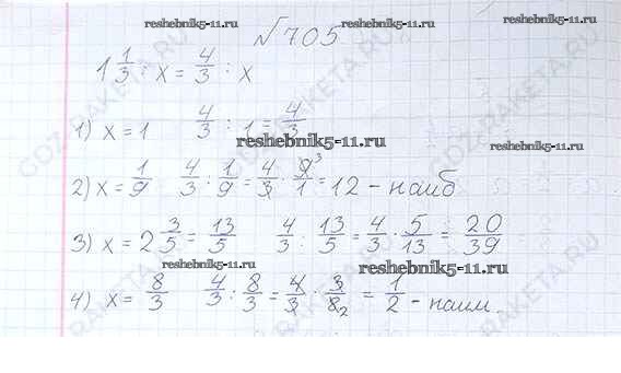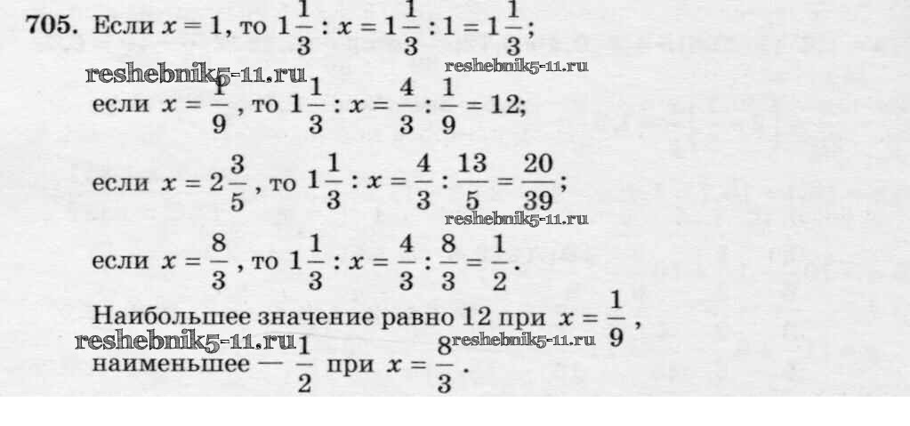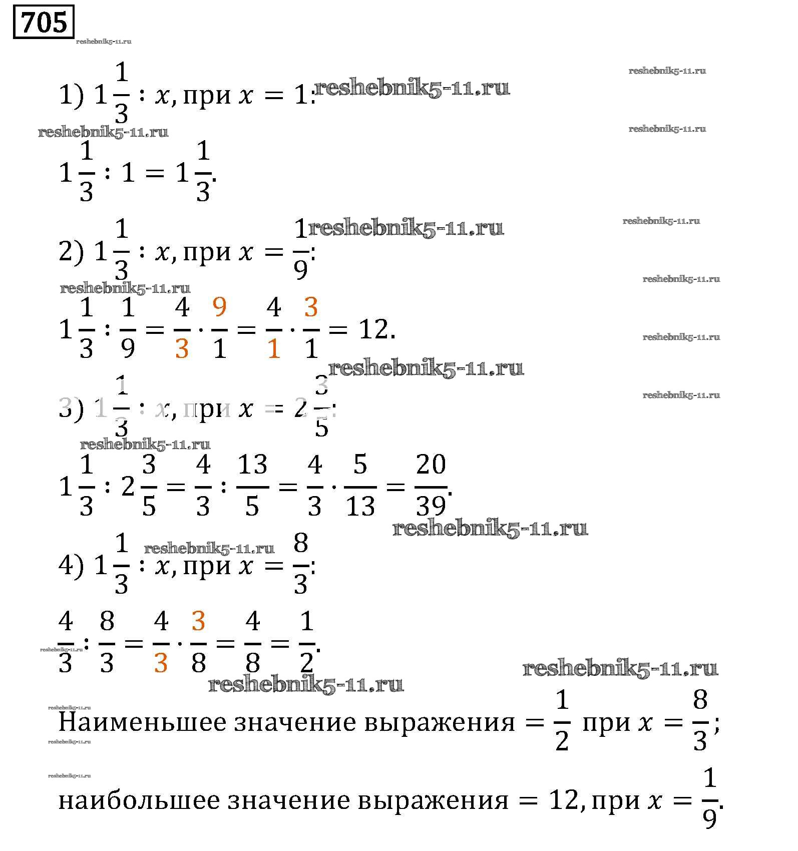 Готовая домашняя работа с ответами по Математике за 6 класс Виленкин, Жохов, Чесноков, Шварцбурд Учебник Мнемозина 2014 ФГОС - §3. Умножение и деление обыкновенных дробей 705