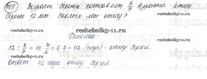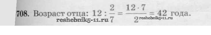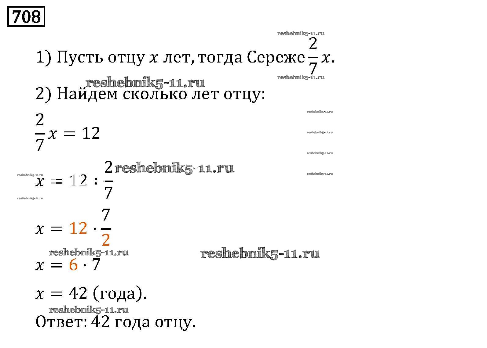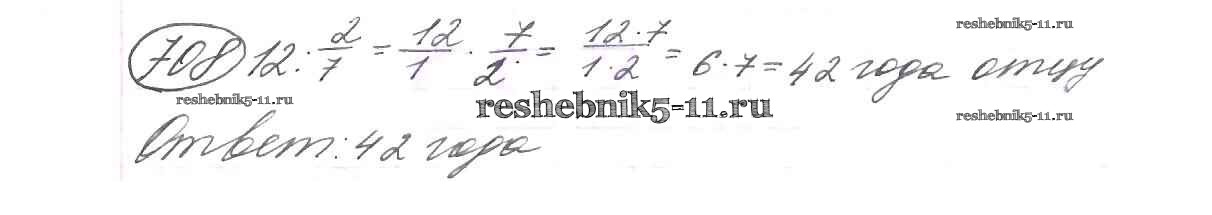 Готовая домашняя работа с ответами по Математике за 6 класс Виленкин, Жохов, Чесноков, Шварцбурд Учебник Мнемозина 2014 ФГОС - §3. Умножение и деление обыкновенных дробей 708