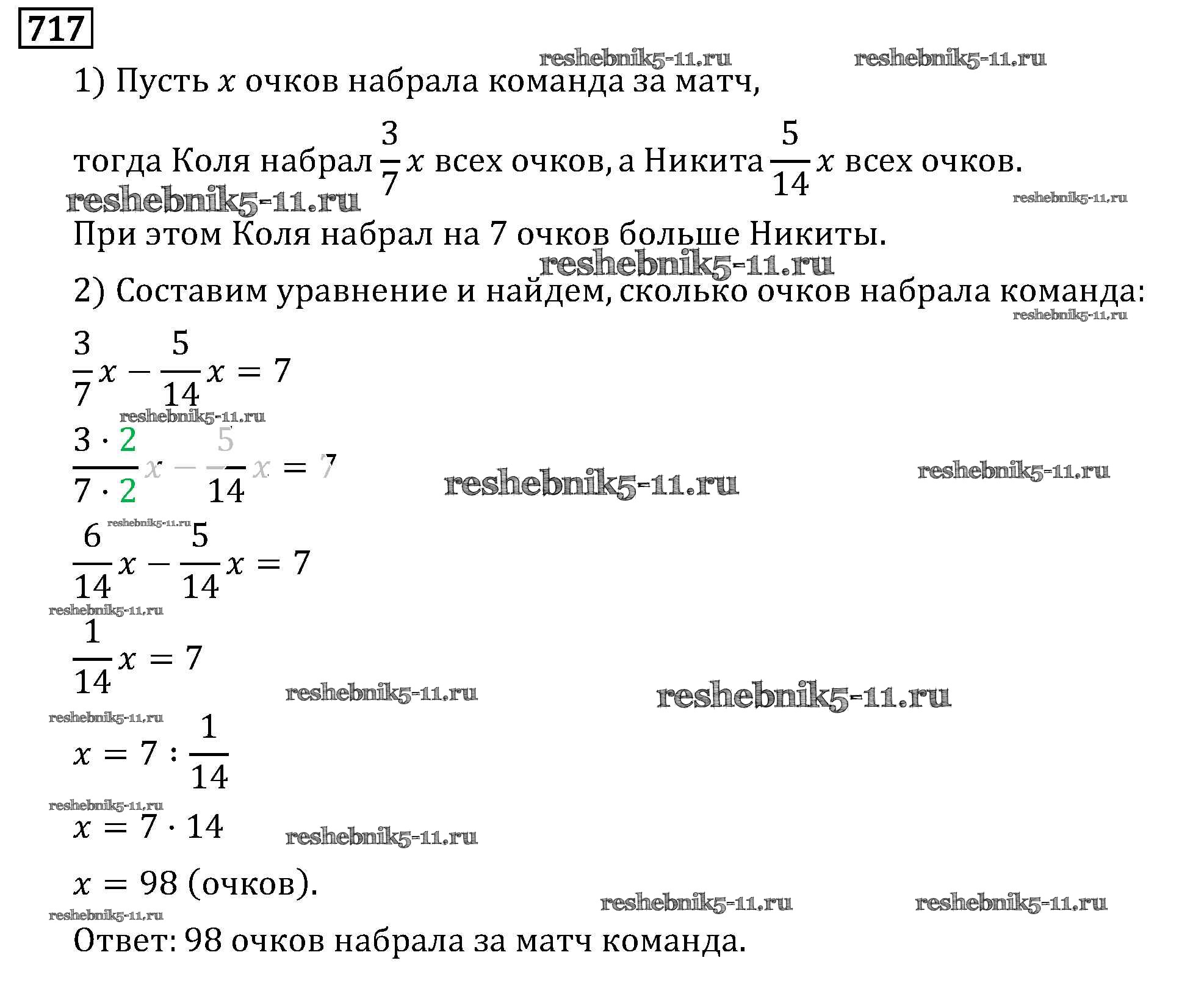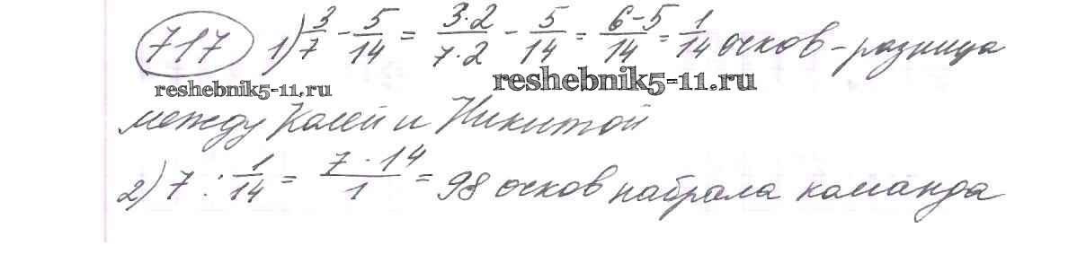 Готовая домашняя работа с ответами по Математике за 6 класс Виленкин, Жохов, Чесноков, Шварцбурд Учебник Мнемозина 2014 ФГОС - §3. Умножение и деление обыкновенных дробей 717