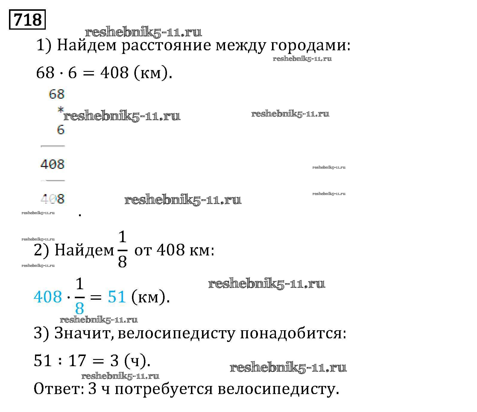Готовая домашняя работа с ответами по Математике за 6 класс Виленкин, Жохов, Чесноков, Шварцбурд Учебник Мнемозина 2014 ФГОС - §3. Умножение и деление обыкновенных дробей 718