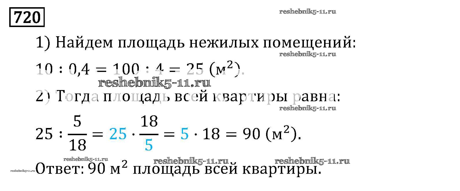 Готовая домашняя работа с ответами по Математике за 6 класс Виленкин, Жохов, Чесноков, Шварцбурд Учебник Мнемозина 2014 ФГОС - §3. Умножение и деление обыкновенных дробей 720