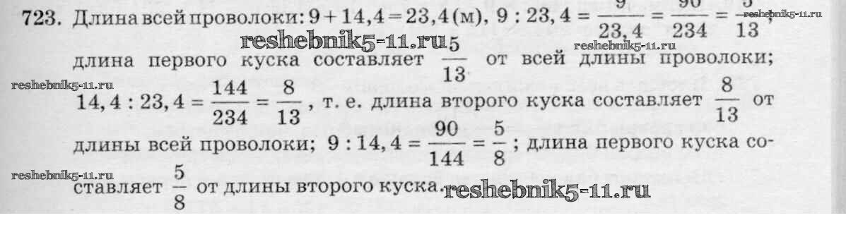 Готовая домашняя работа с ответами по Математике за 6 класс Виленкин, Жохов, Чесноков, Шварцбурд Учебник Мнемозина 2014 ФГОС - §4. Отношения и пропорции 723