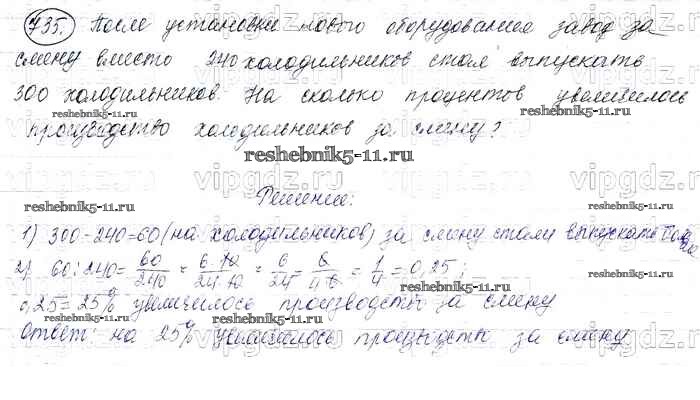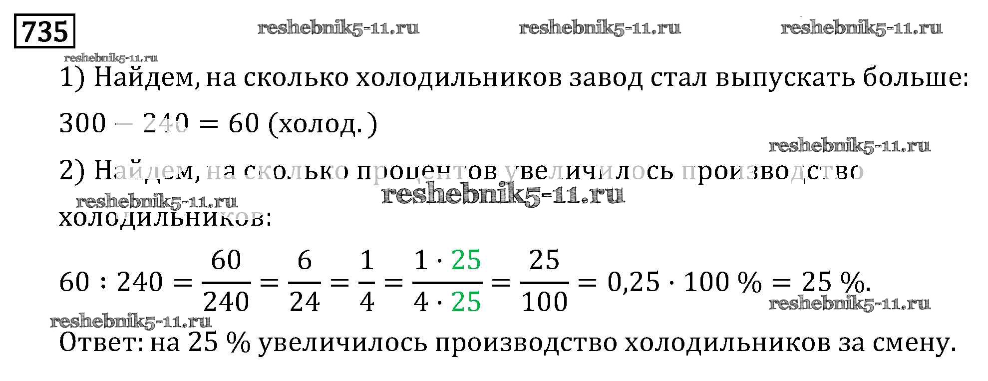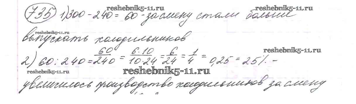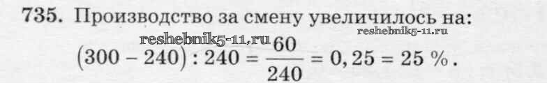 Готовая домашняя работа с ответами по Математике за 6 класс Виленкин, Жохов, Чесноков, Шварцбурд Учебник Мнемозина 2014 ФГОС - §4. Отношения и пропорции 735
