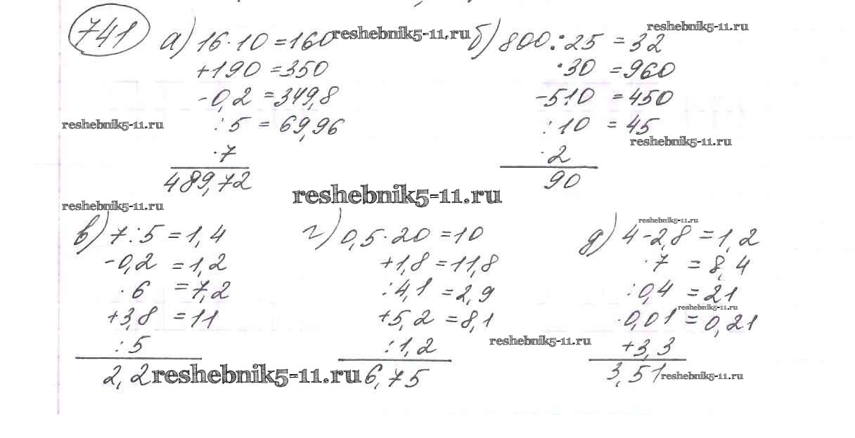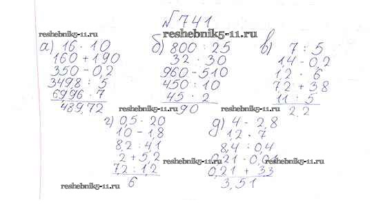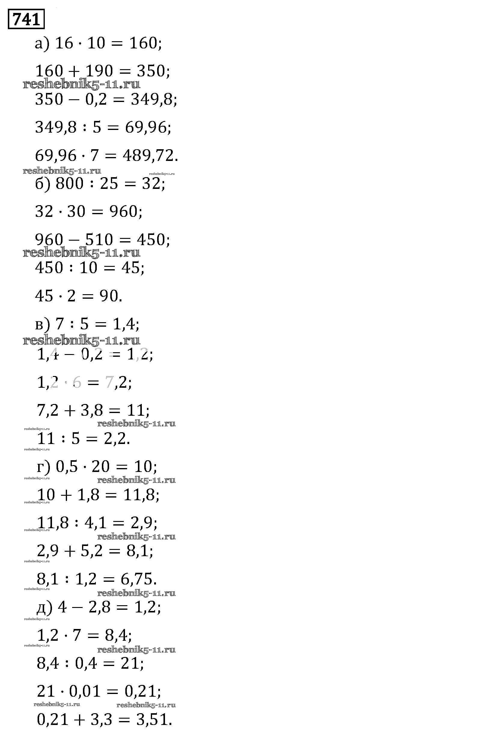 Готовая домашняя работа с ответами по Математике за 6 класс Виленкин, Жохов, Чесноков, Шварцбурд Учебник Мнемозина 2014 ФГОС - §4. Отношения и пропорции 741