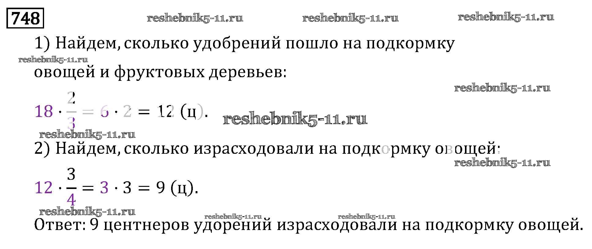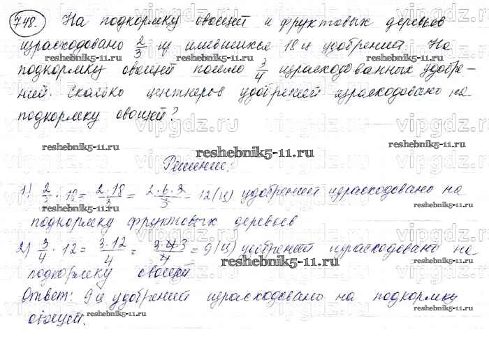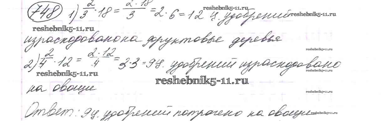 Готовая домашняя работа с ответами по Математике за 6 класс Виленкин, Жохов, Чесноков, Шварцбурд Учебник Мнемозина 2014 ФГОС - §4. Отношения и пропорции 748