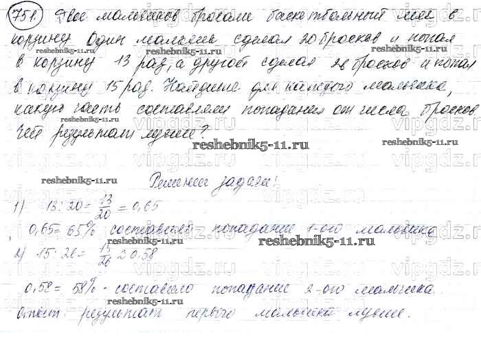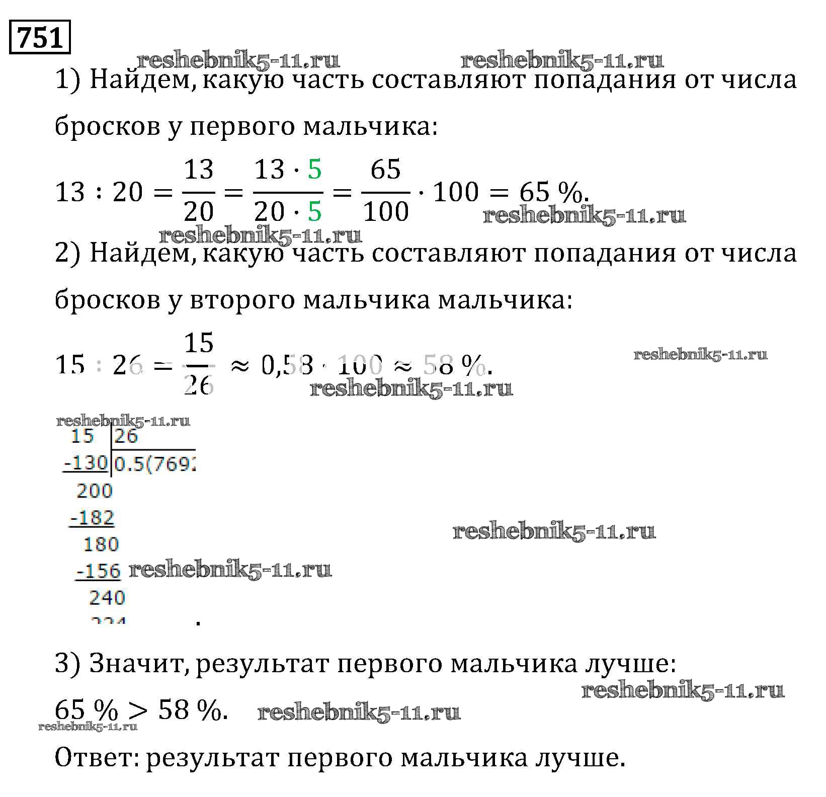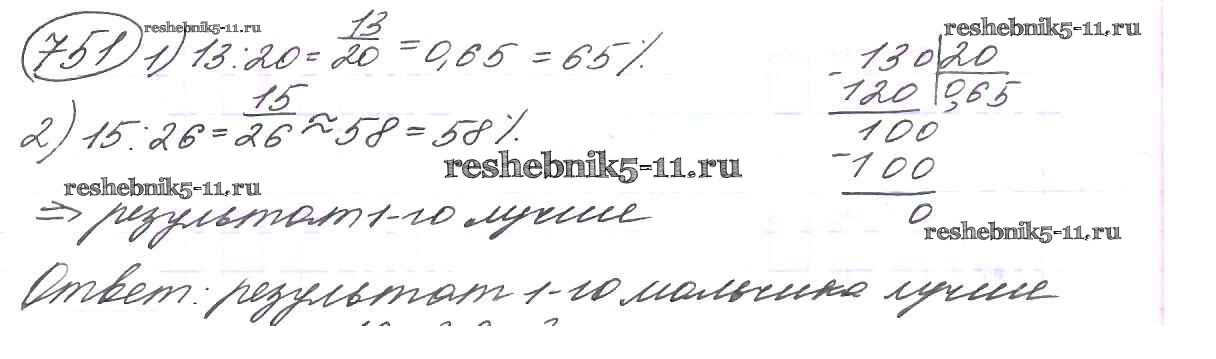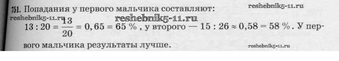 Готовая домашняя работа с ответами по Математике за 6 класс Виленкин, Жохов, Чесноков, Шварцбурд Учебник Мнемозина 2014 ФГОС - §4. Отношения и пропорции 751