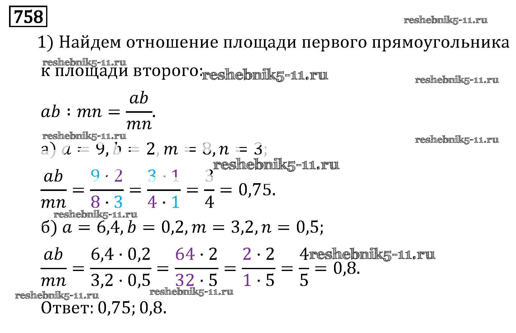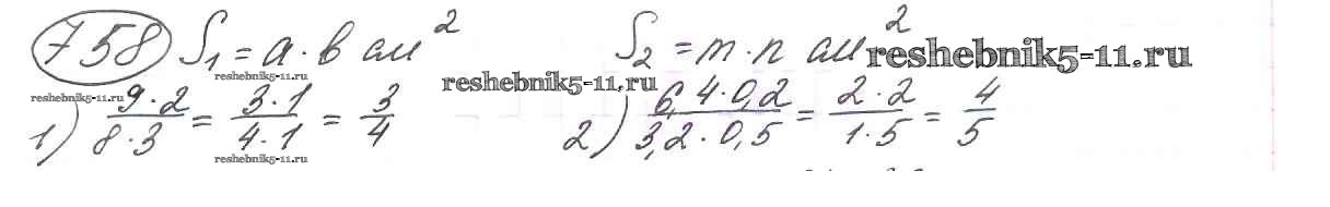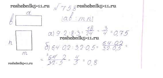 Готовая домашняя работа с ответами по Математике за 6 класс Виленкин, Жохов, Чесноков, Шварцбурд Учебник Мнемозина 2014 ФГОС - §4. Отношения и пропорции 758