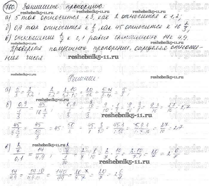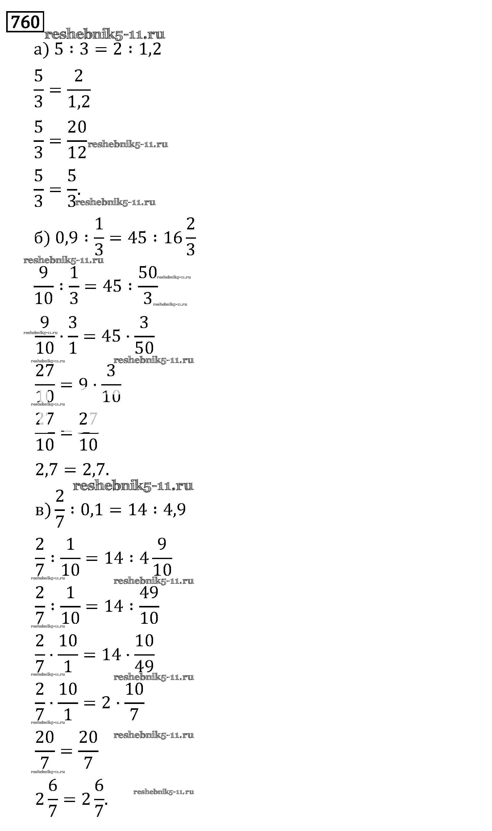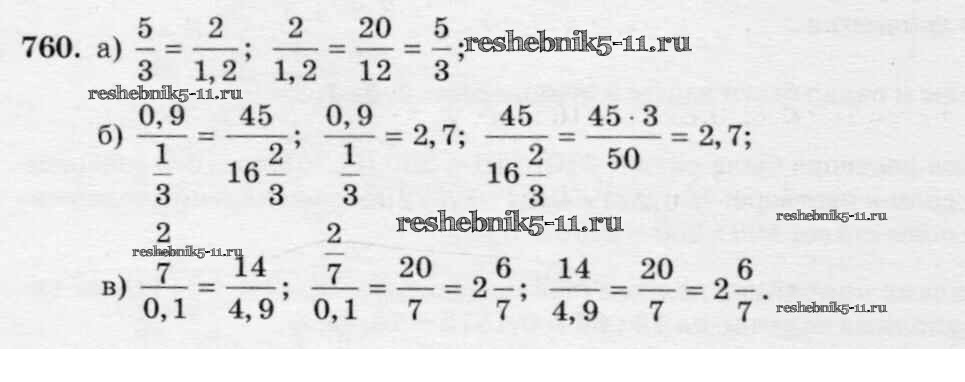 Готовая домашняя работа с ответами по Математике за 6 класс Виленкин, Жохов, Чесноков, Шварцбурд Учебник Мнемозина 2014 ФГОС - §4. Отношения и пропорции 760