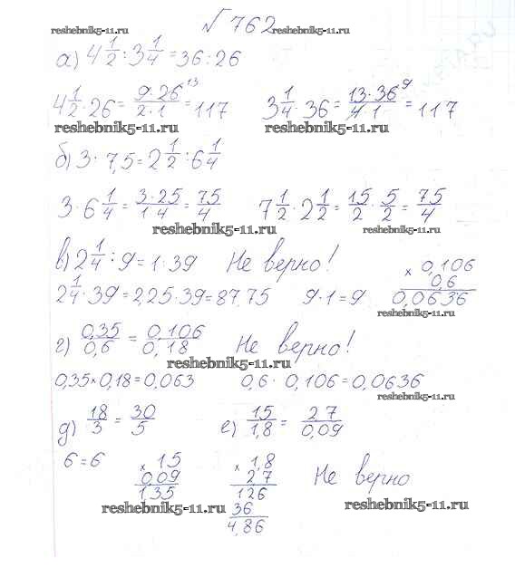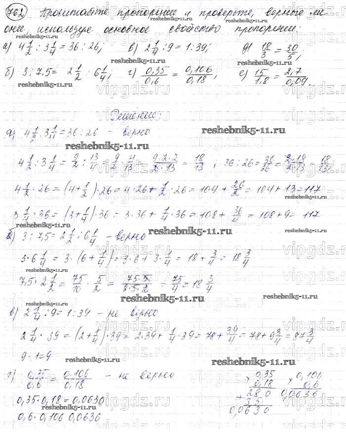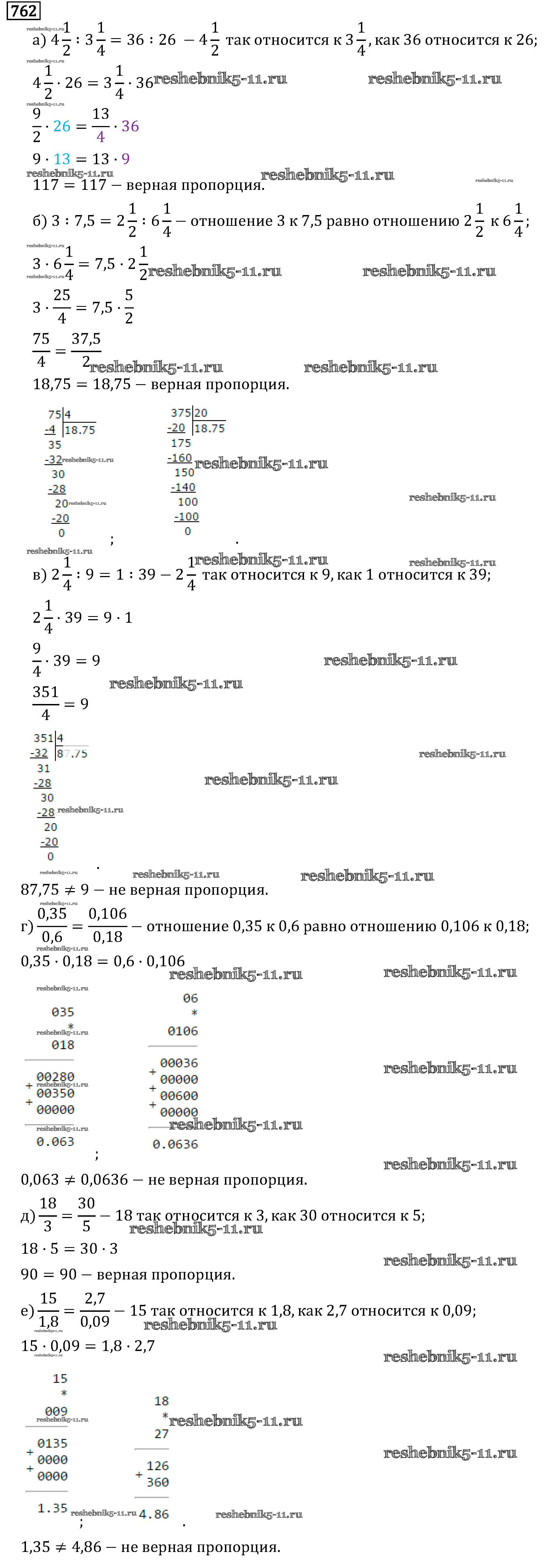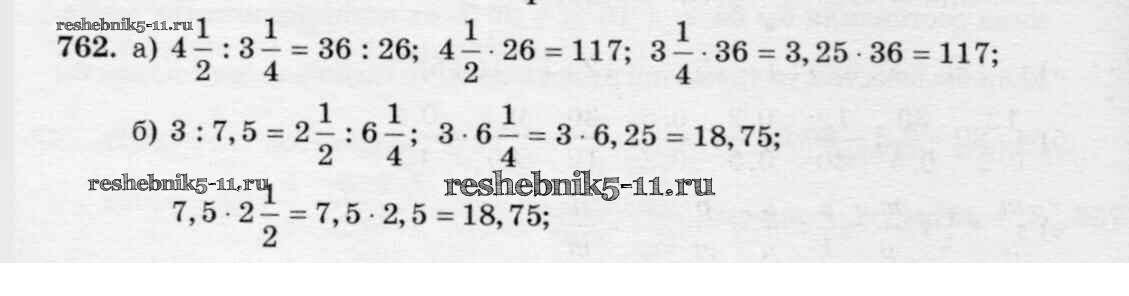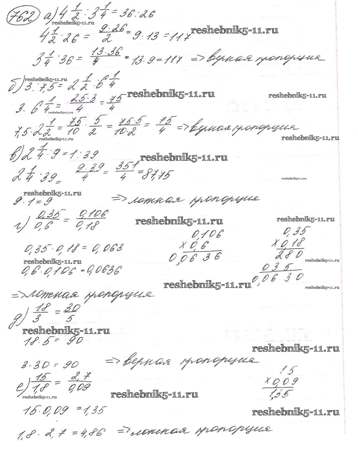 Готовая домашняя работа с ответами по Математике за 6 класс Виленкин, Жохов, Чесноков, Шварцбурд Учебник Мнемозина 2014 ФГОС - §4. Отношения и пропорции 762