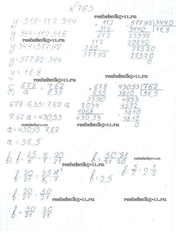 Готовая домашняя работа с ответами по Математике за 6 класс Виленкин, Жохов, Чесноков, Шварцбурд Учебник Мнемозина 2014 ФГОС - §4. Отношения и пропорции 763