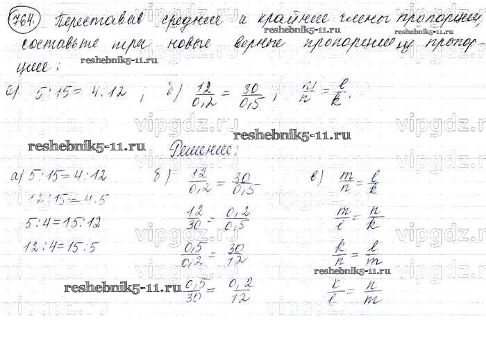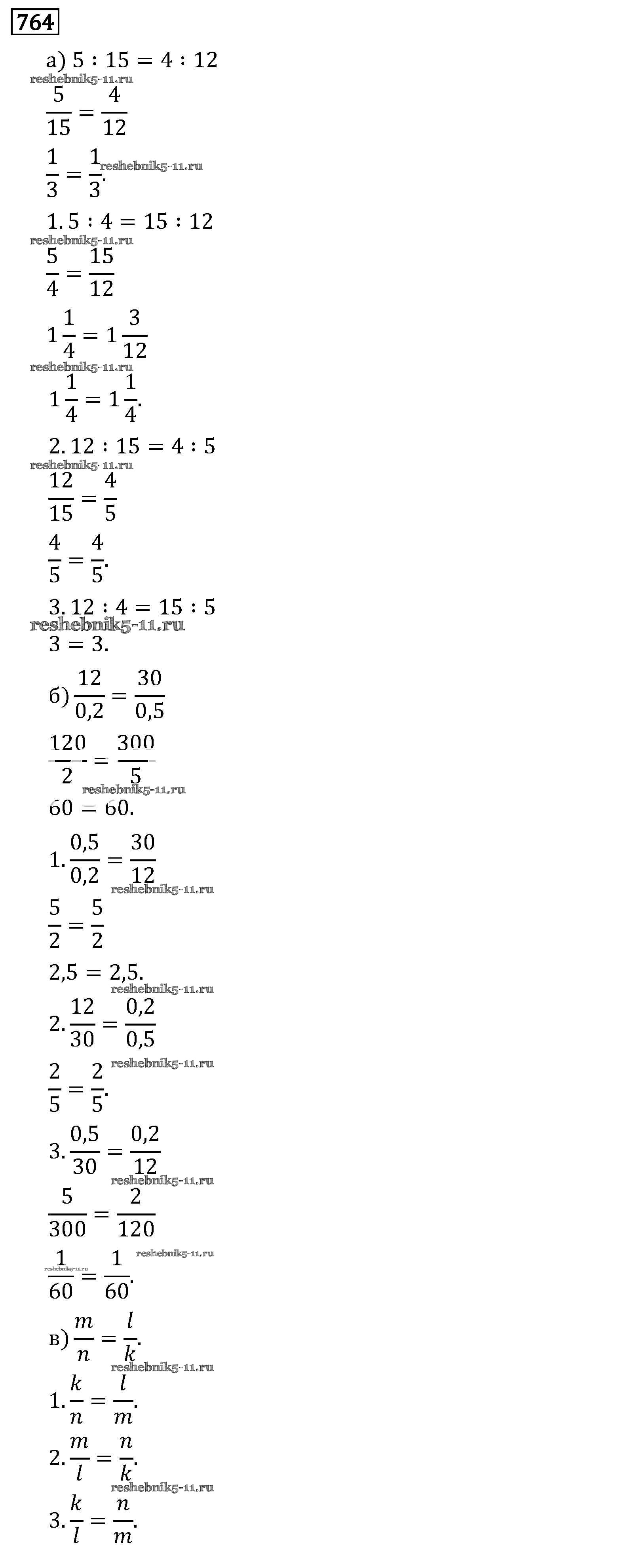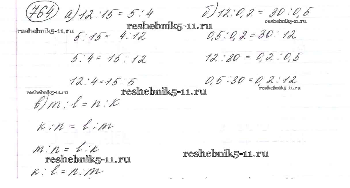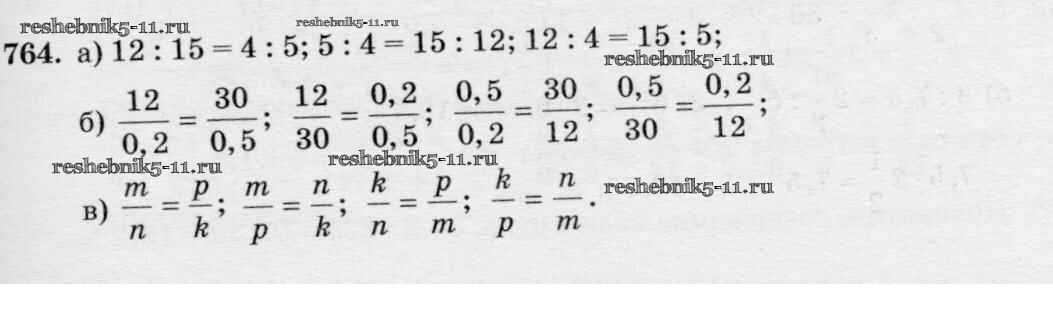 Готовая домашняя работа с ответами по Математике за 6 класс Виленкин, Жохов, Чесноков, Шварцбурд Учебник Мнемозина 2014 ФГОС - §4. Отношения и пропорции 764