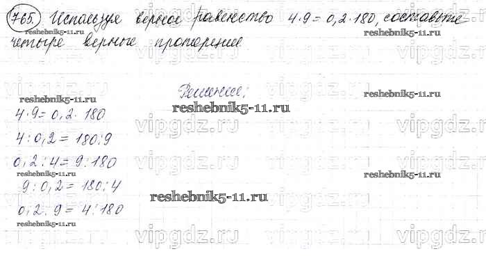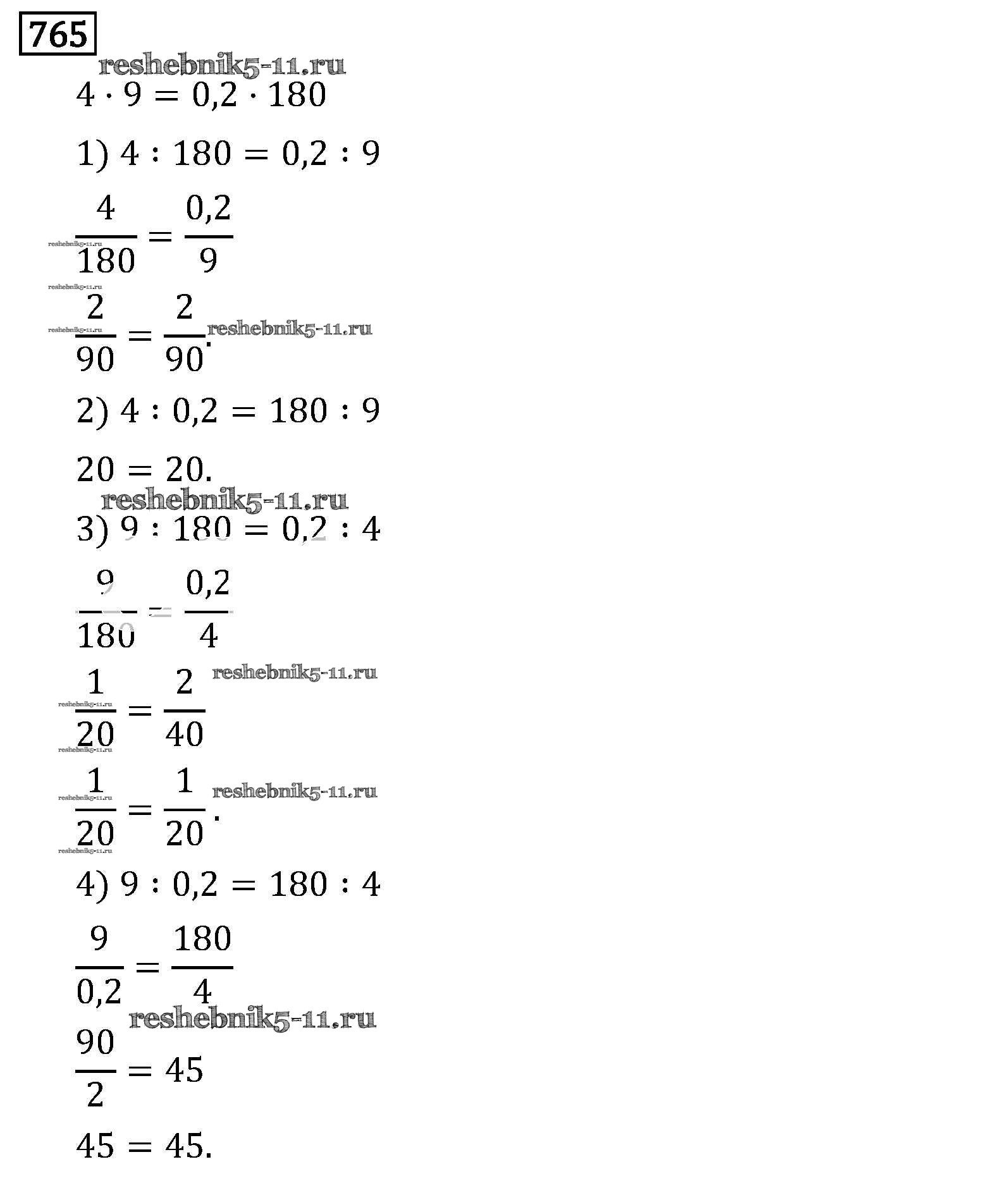 Готовая домашняя работа с ответами по Математике за 6 класс Виленкин, Жохов, Чесноков, Шварцбурд Учебник Мнемозина 2014 ФГОС - §4. Отношения и пропорции 765