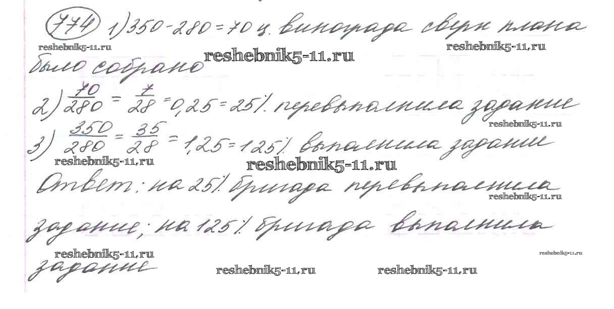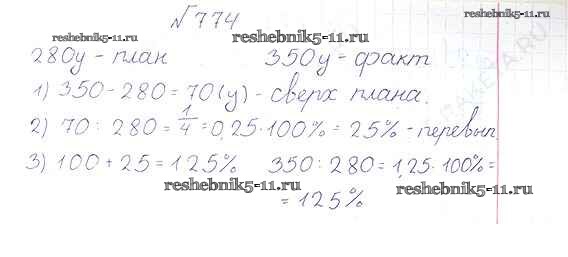 Готовая домашняя работа с ответами по Математике за 6 класс Виленкин, Жохов, Чесноков, Шварцбурд Учебник Мнемозина 2014 ФГОС - §4. Отношения и пропорции 774