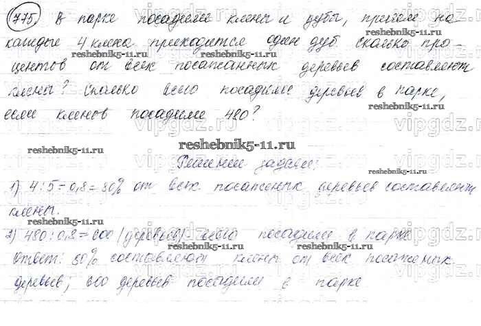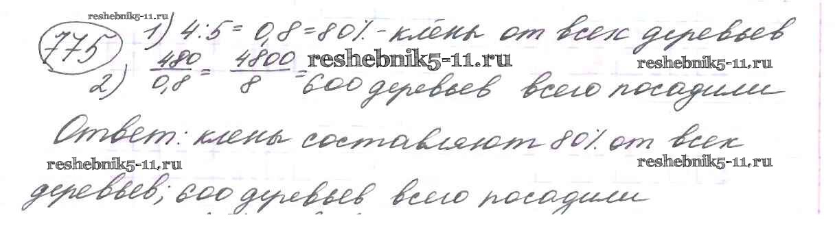Готовая домашняя работа с ответами по Математике за 6 класс Виленкин, Жохов, Чесноков, Шварцбурд Учебник Мнемозина 2014 ФГОС - §4. Отношения и пропорции 775