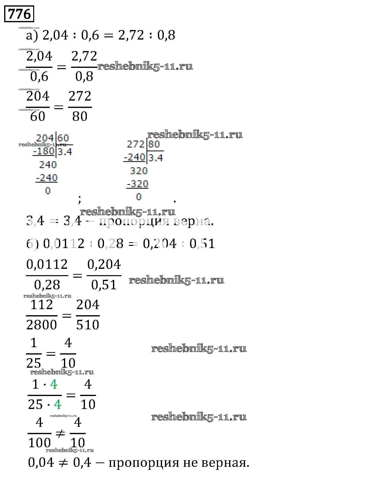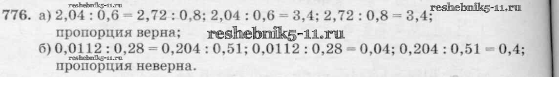 Готовая домашняя работа с ответами по Математике за 6 класс Виленкин, Жохов, Чесноков, Шварцбурд Учебник Мнемозина 2014 ФГОС - §4. Отношения и пропорции 776