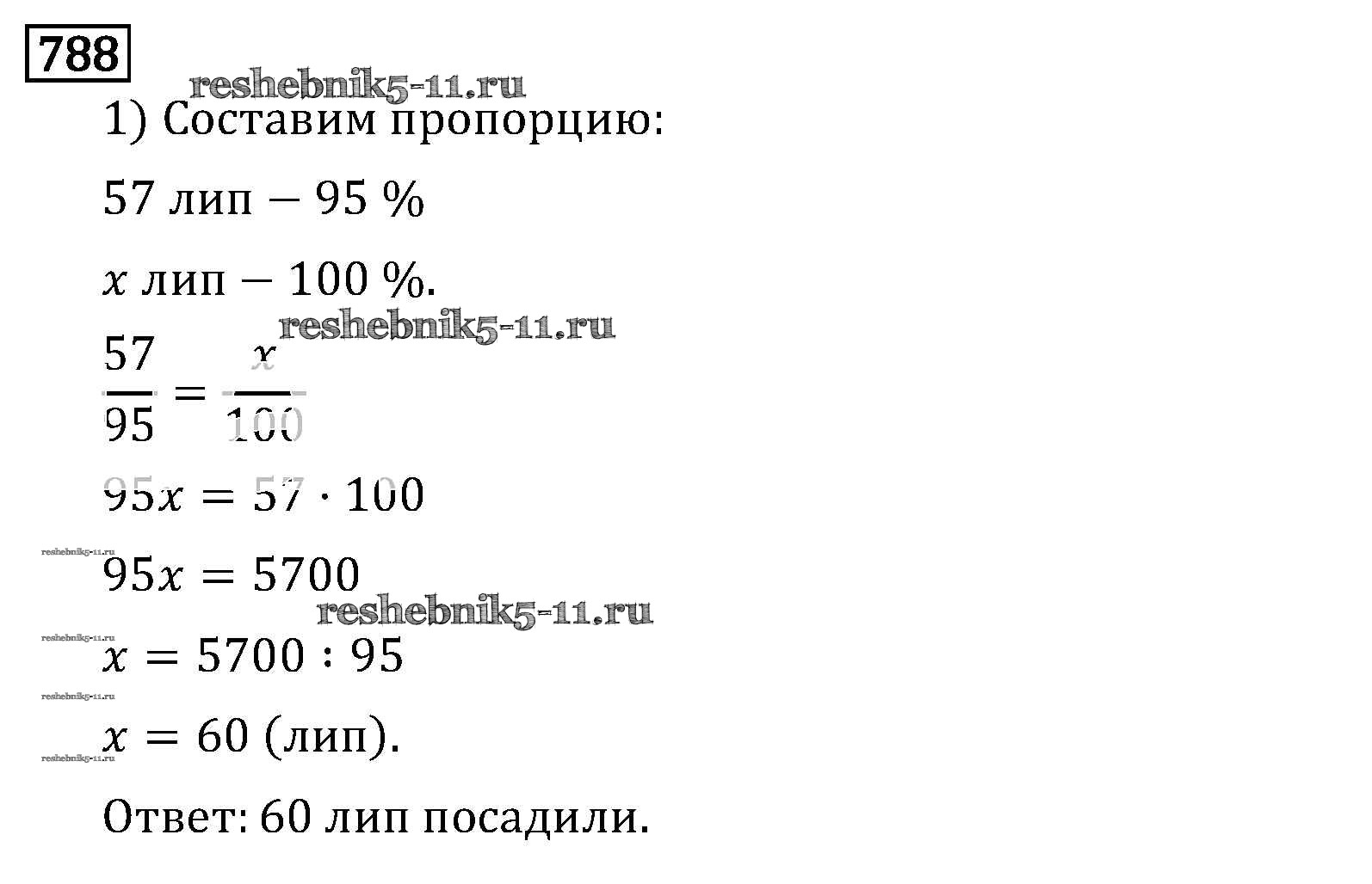 Готовая домашняя работа с ответами по Математике за 6 класс Виленкин, Жохов, Чесноков, Шварцбурд Учебник Мнемозина 2014 ФГОС - §4. Отношения и пропорции 788