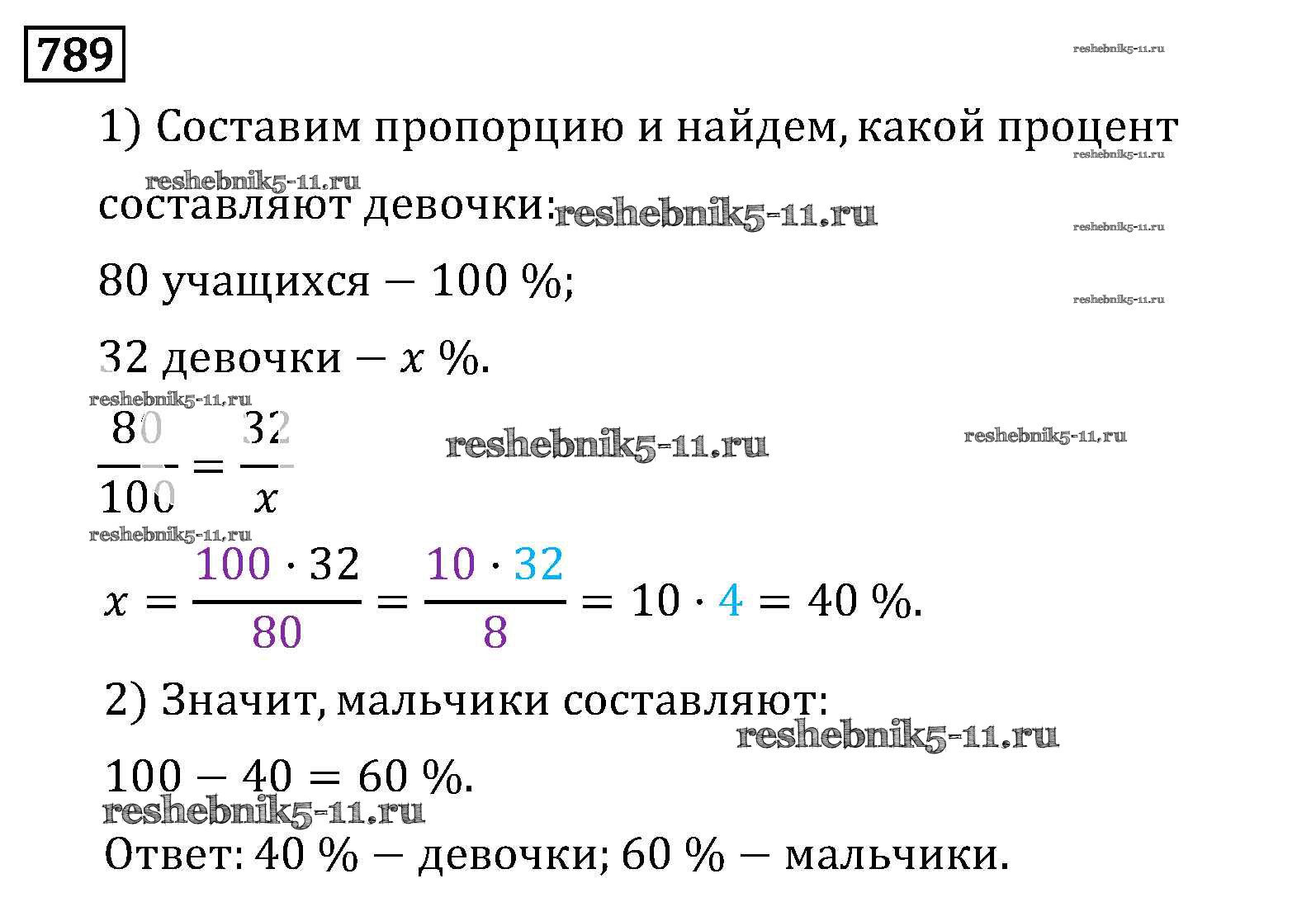 Готовая домашняя работа с ответами по Математике за 6 класс Виленкин, Жохов, Чесноков, Шварцбурд Учебник Мнемозина 2014 ФГОС - §4. Отношения и пропорции 789