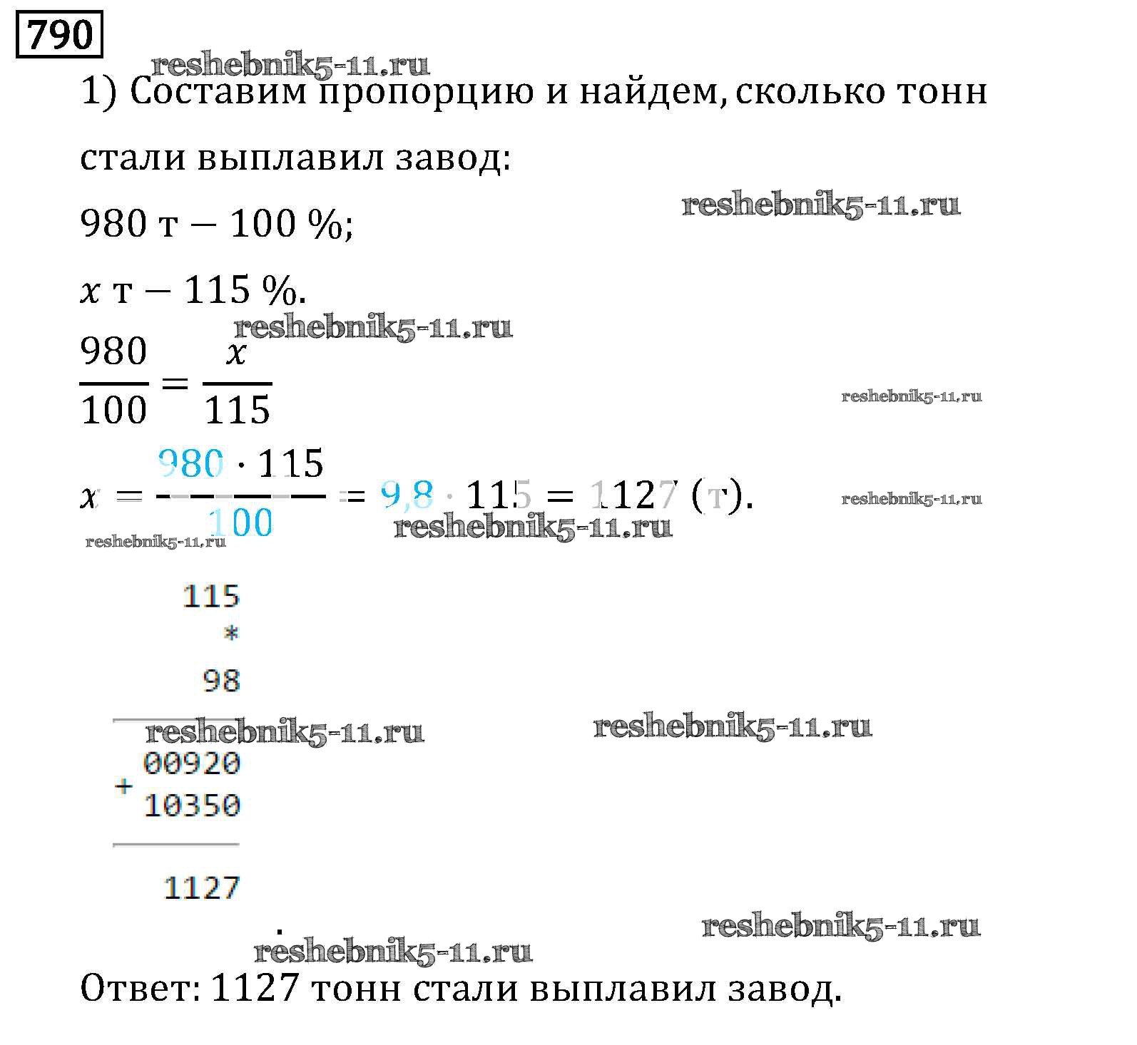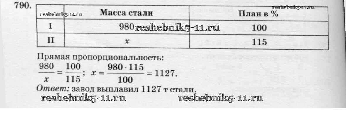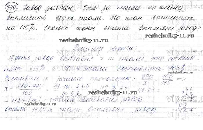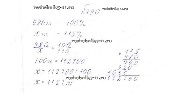 Готовая домашняя работа с ответами по Математике за 6 класс Виленкин, Жохов, Чесноков, Шварцбурд Учебник Мнемозина 2014 ФГОС - §4. Отношения и пропорции 790