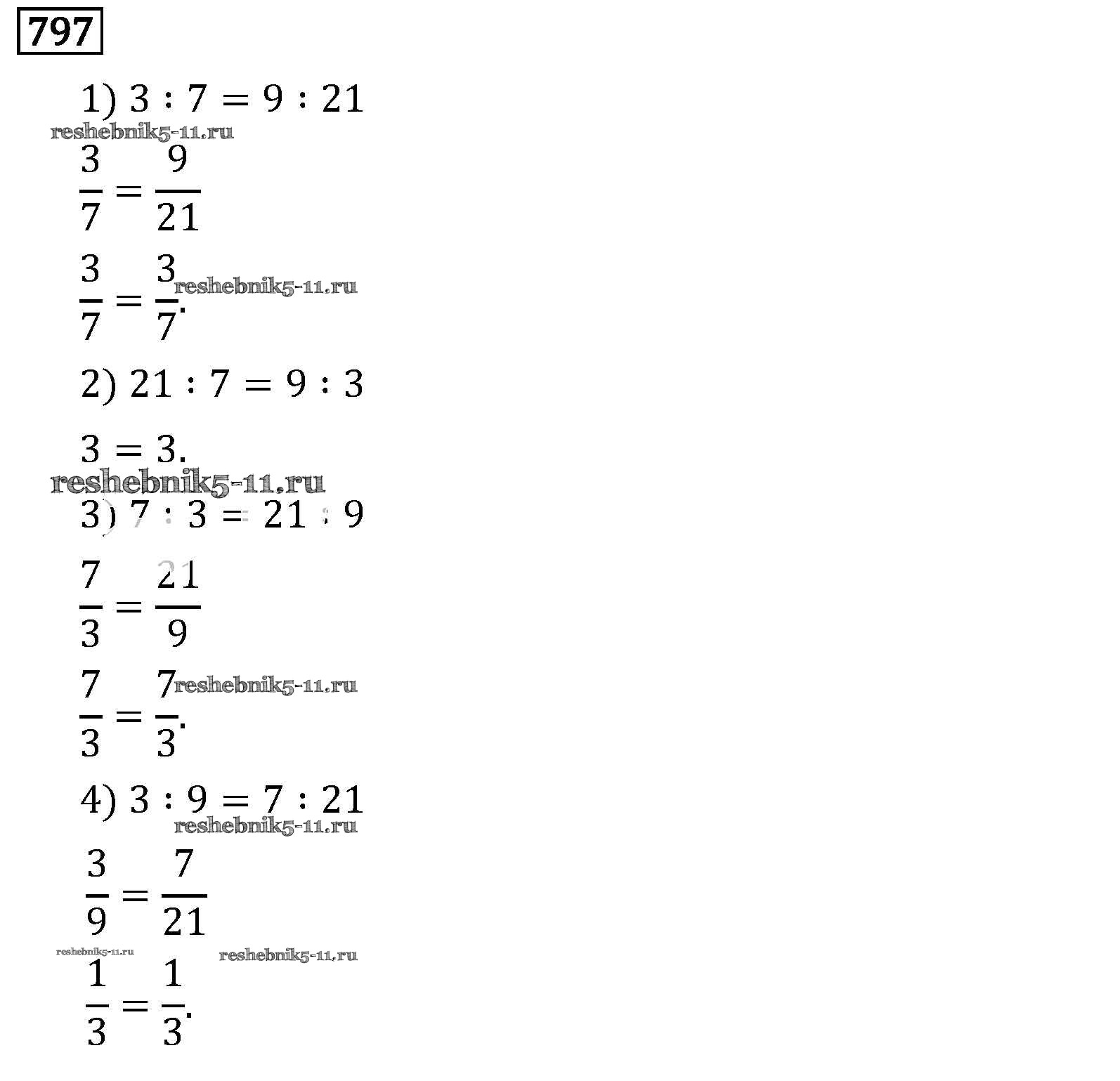 Готовая домашняя работа с ответами по Математике за 6 класс Виленкин, Жохов, Чесноков, Шварцбурд Учебник Мнемозина 2014 ФГОС - §4. Отношения и пропорции 797