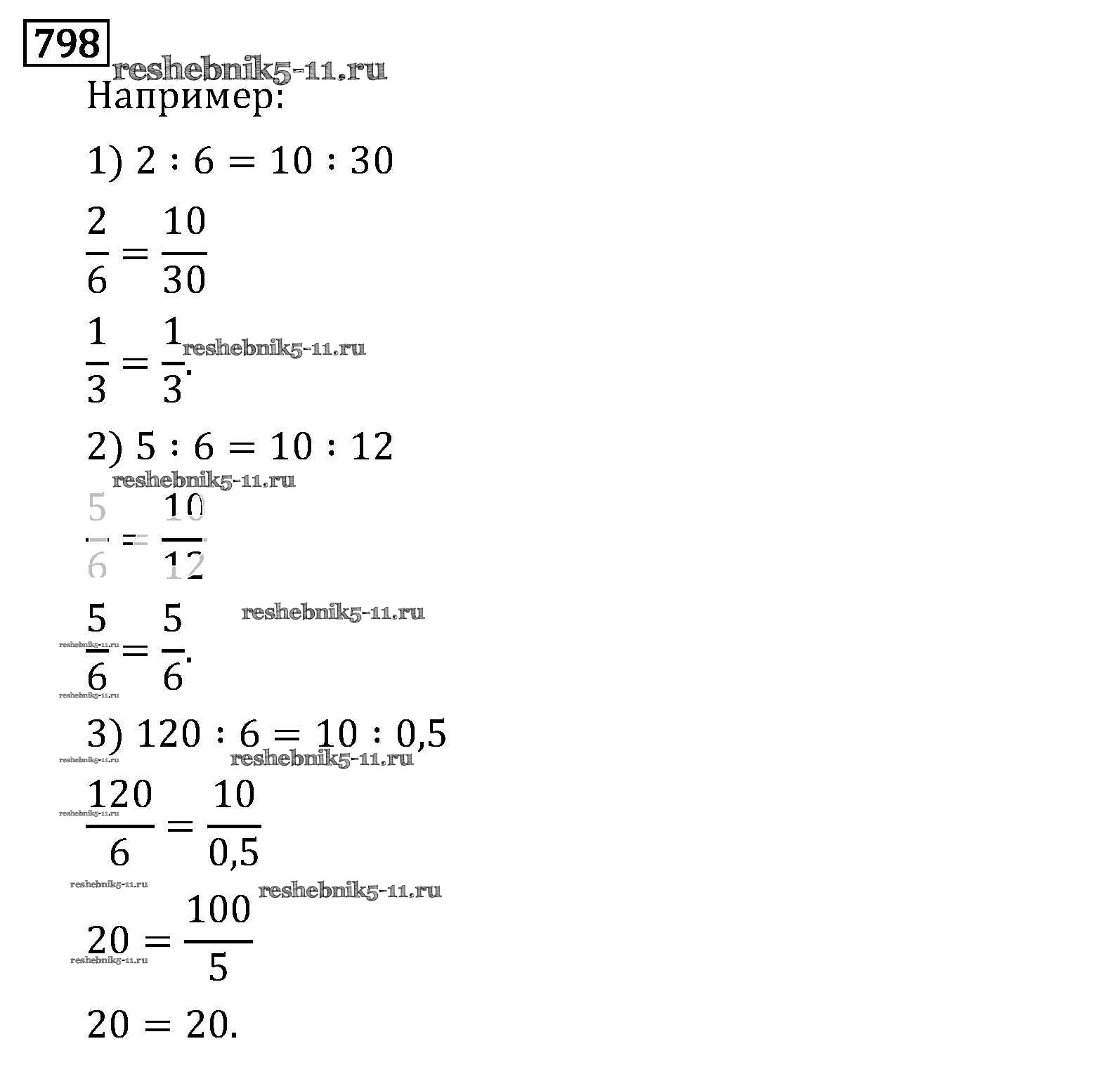 Готовая домашняя работа с ответами по Математике за 6 класс Виленкин, Жохов, Чесноков, Шварцбурд Учебник Мнемозина 2014 ФГОС - §4. Отношения и пропорции 798