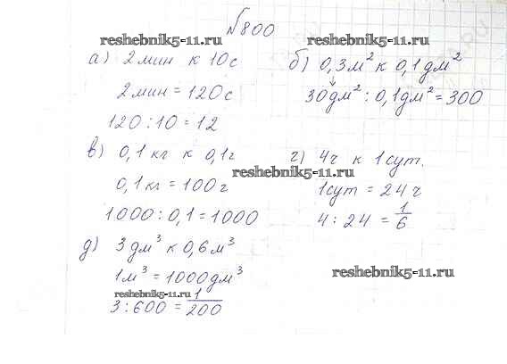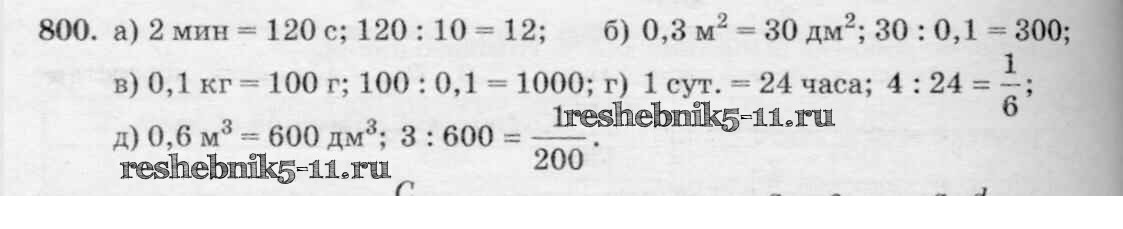 Готовая домашняя работа с ответами по Математике за 6 класс Виленкин, Жохов, Чесноков, Шварцбурд Учебник Мнемозина 2014 ФГОС - §4. Отношения и пропорции 800