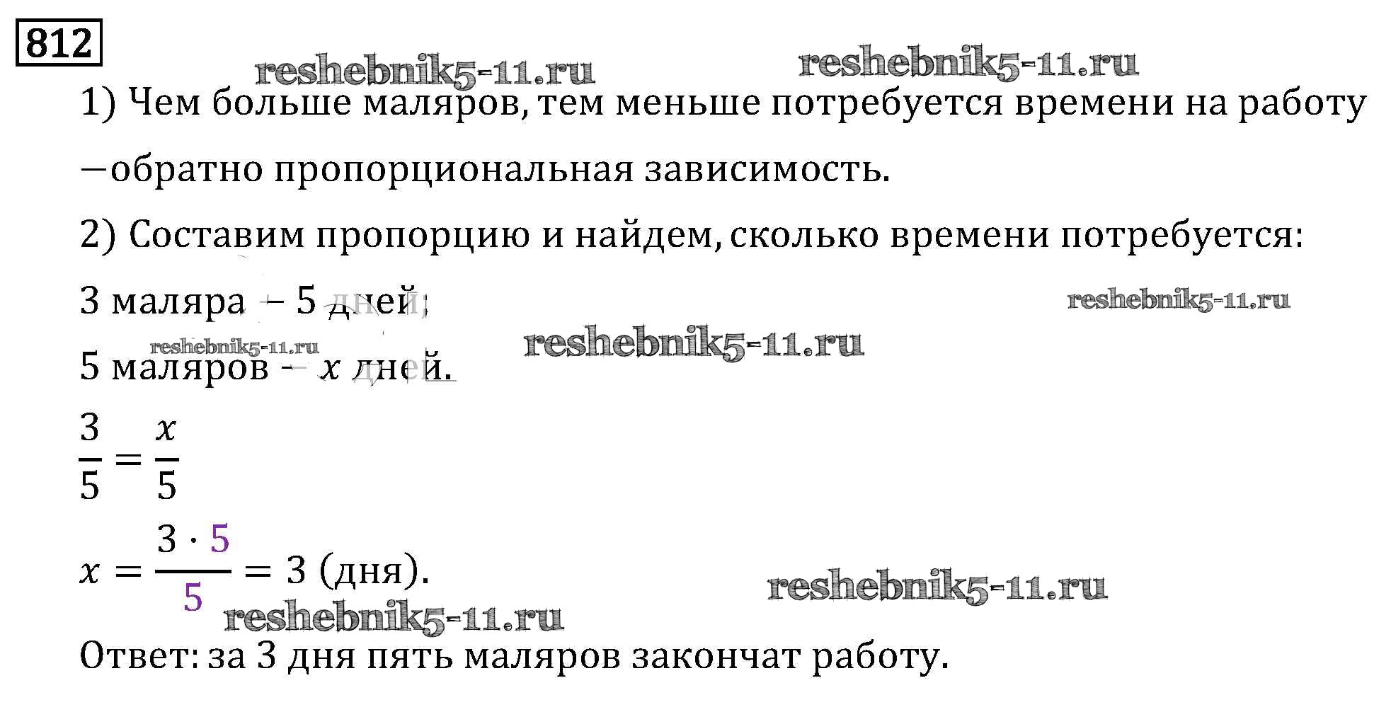 Готовая домашняя работа с ответами по Математике за 6 класс Виленкин, Жохов, Чесноков, Шварцбурд Учебник Мнемозина 2014 ФГОС - §4. Отношения и пропорции 812