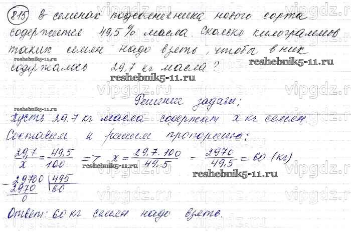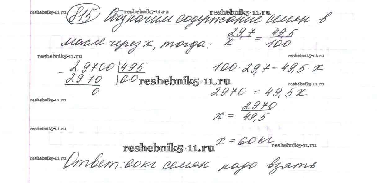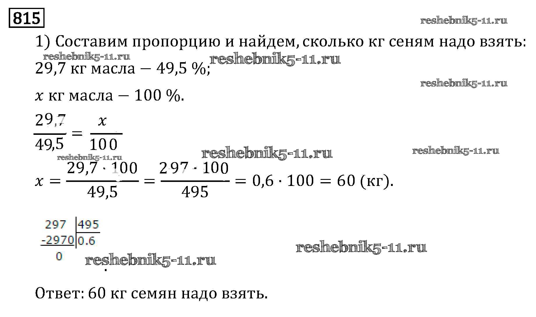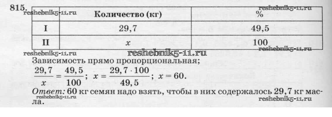 Готовая домашняя работа с ответами по Математике за 6 класс Виленкин, Жохов, Чесноков, Шварцбурд Учебник Мнемозина 2014 ФГОС - §4. Отношения и пропорции 815