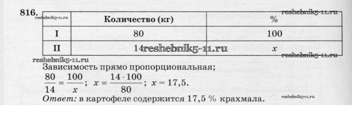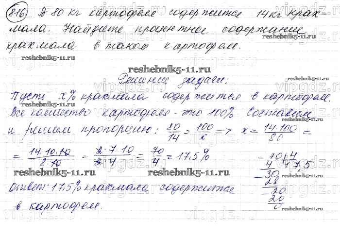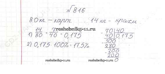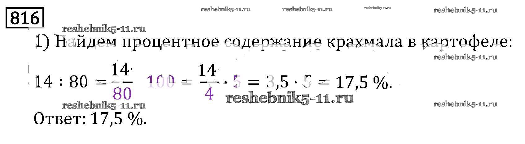 Готовая домашняя работа с ответами по Математике за 6 класс Виленкин, Жохов, Чесноков, Шварцбурд Учебник Мнемозина 2014 ФГОС - §4. Отношения и пропорции 816